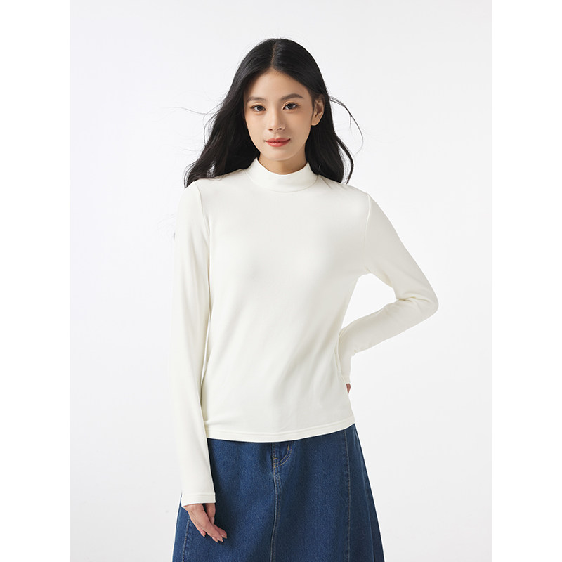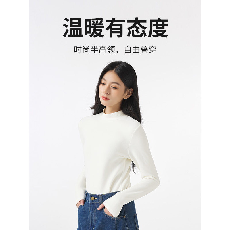 热风打底衫女简约修身显瘦半高领长T恤2025年冬季新款女休闲通勤