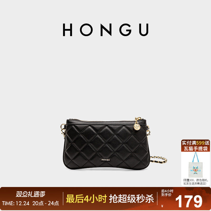 红谷包包女新款真皮菱格链条单肩斜挎包百搭休闲零钱手抓包手机包