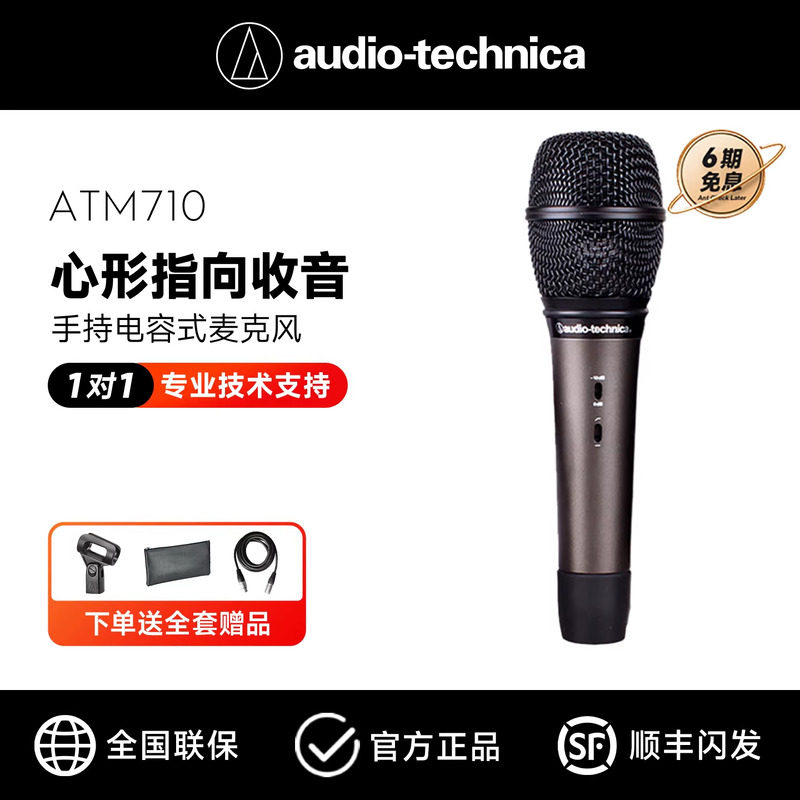 铁三角ATM710主播直播话筒声卡套装有声书演出录音电容麦克风