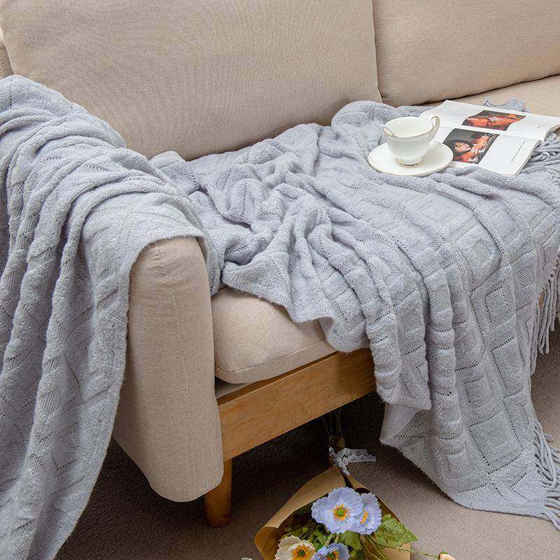 39001毛圈菱形休闲毯四季针织线毯民宿床位搭毯酒店床毯几何毯子
