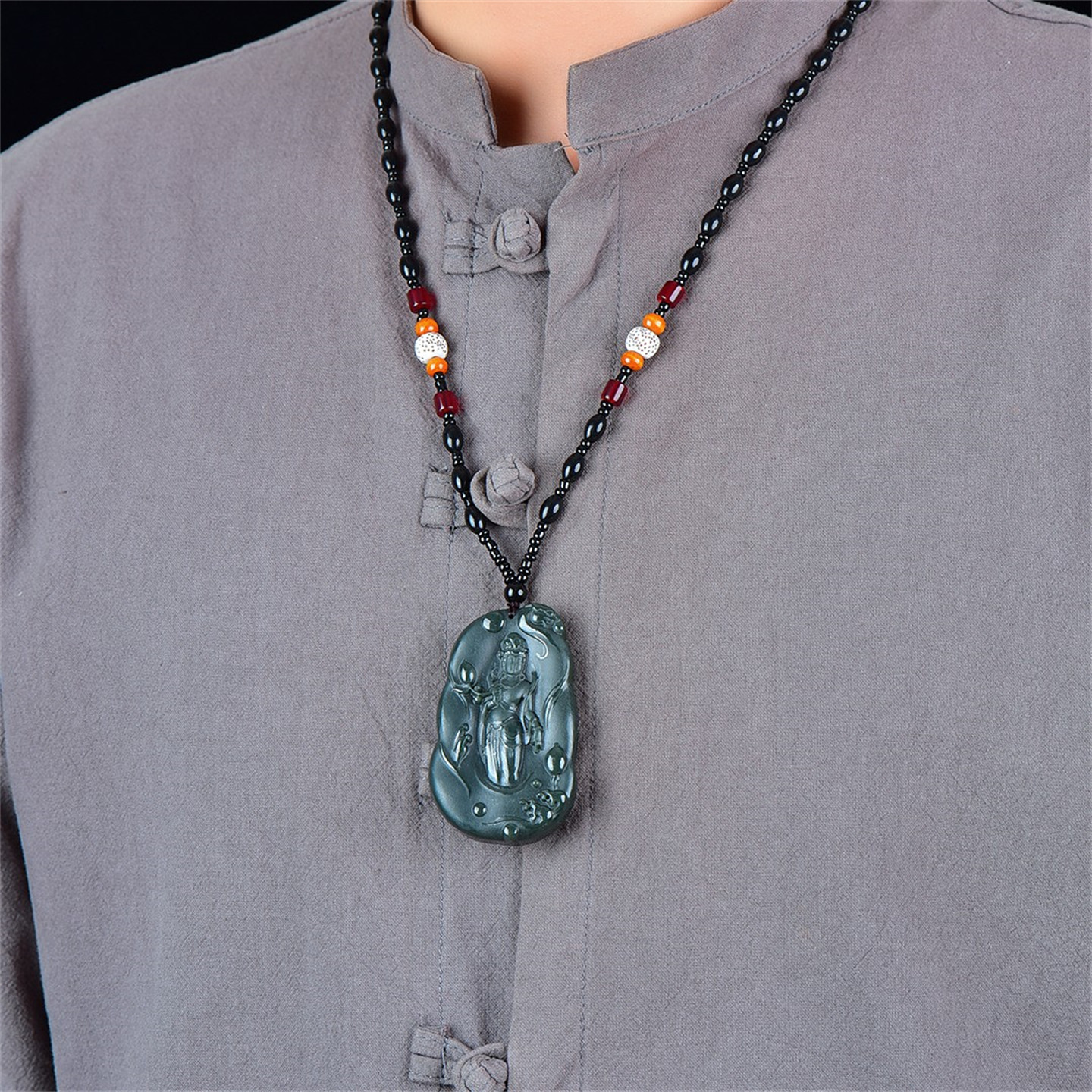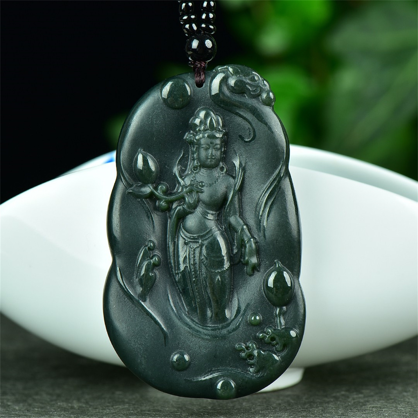 送证书天然新疆和田玉青玉挂件南海观音菩萨玉石吊坠男款玉佩8828