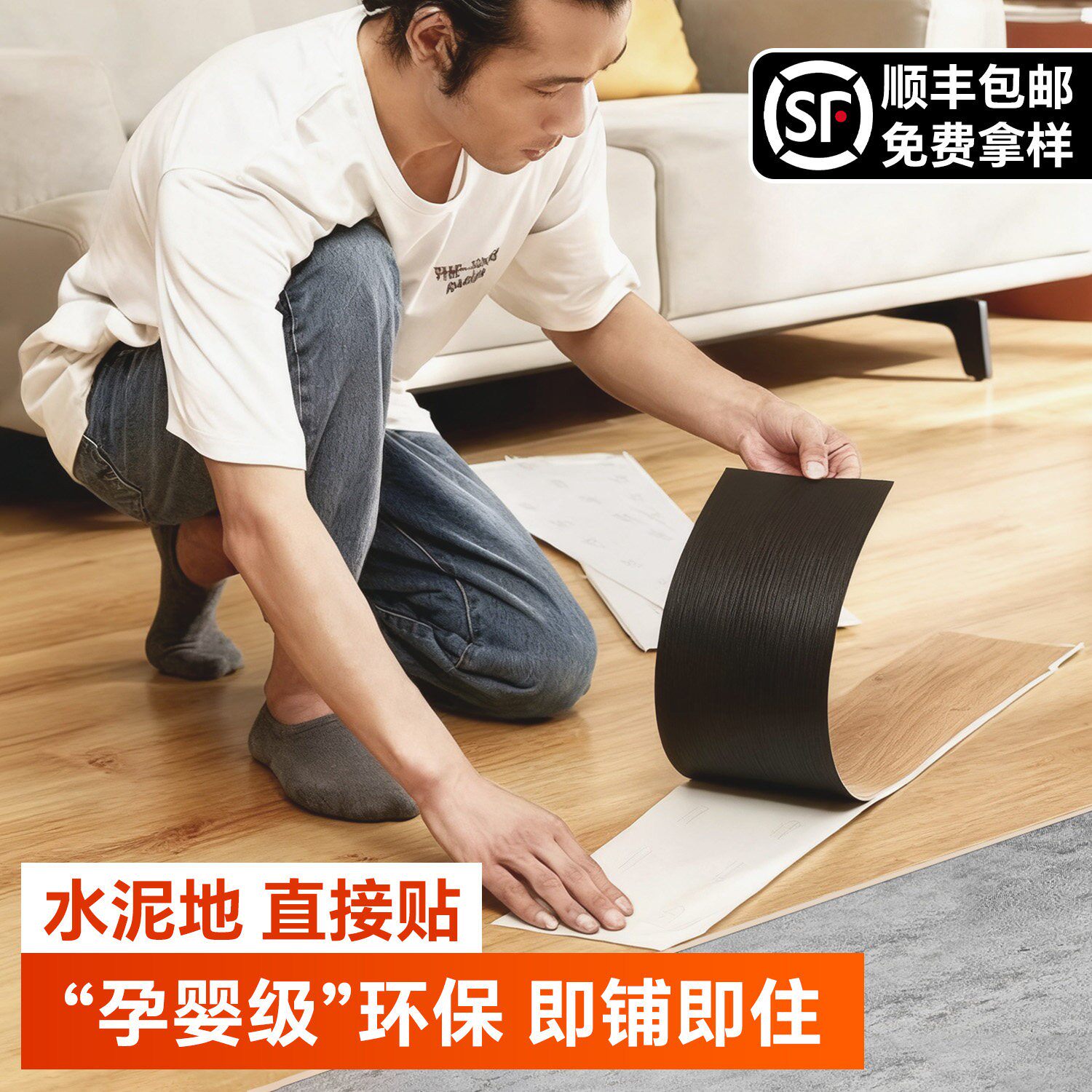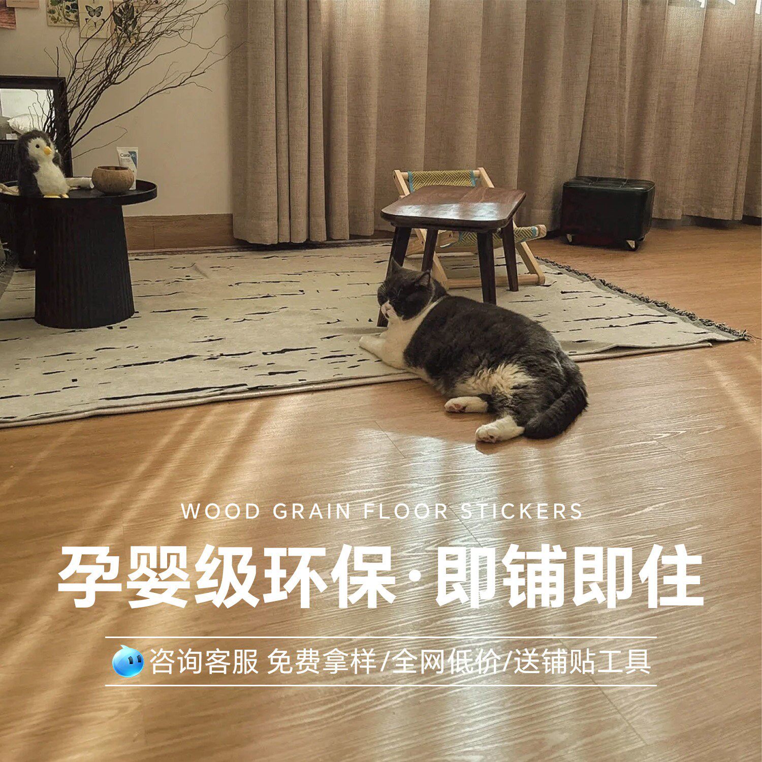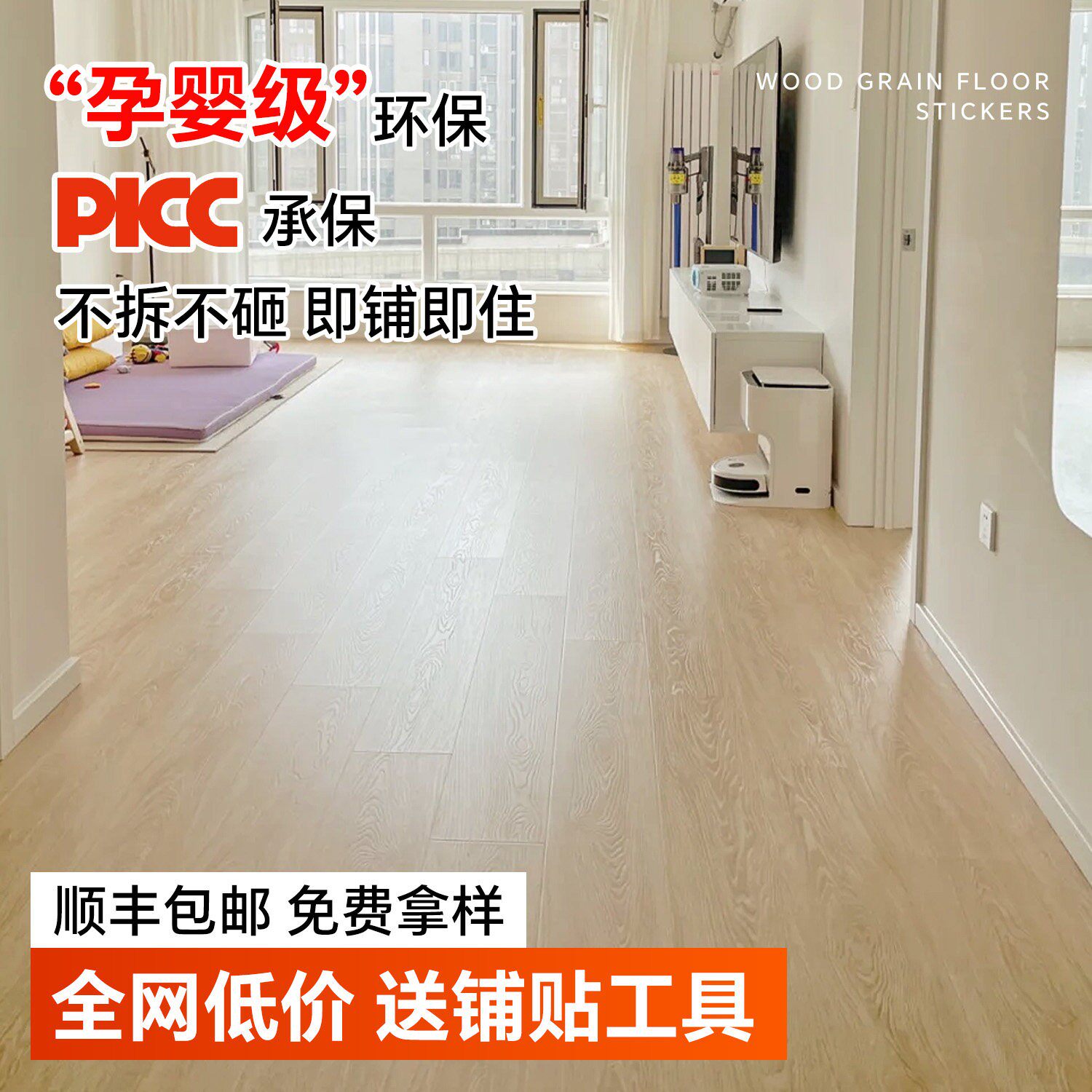 自粘pvc地板贴仿木纹地板革地砖贴纸加厚防水耐磨卧室地面翻新