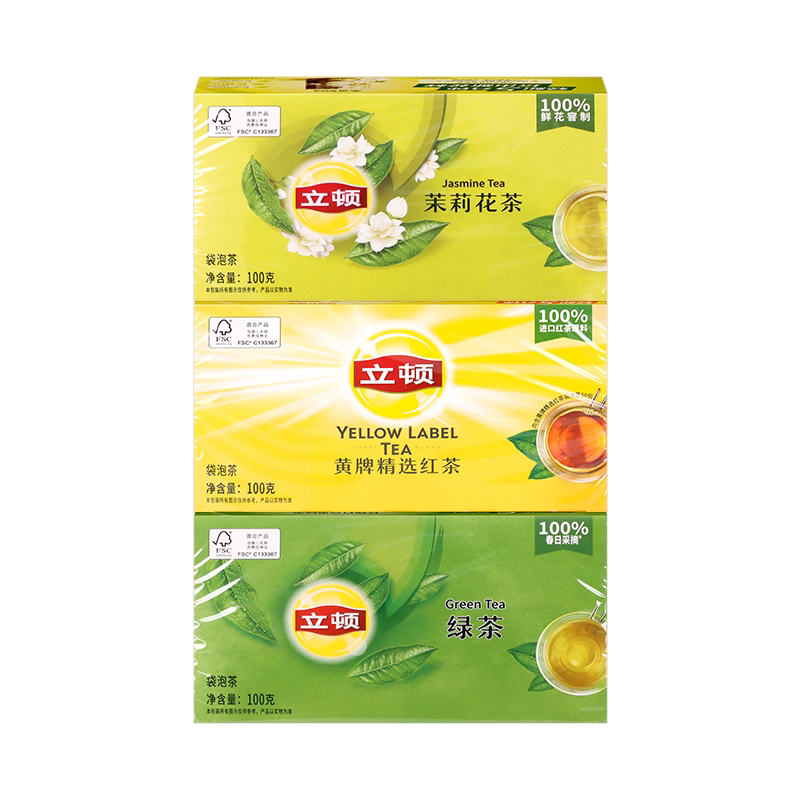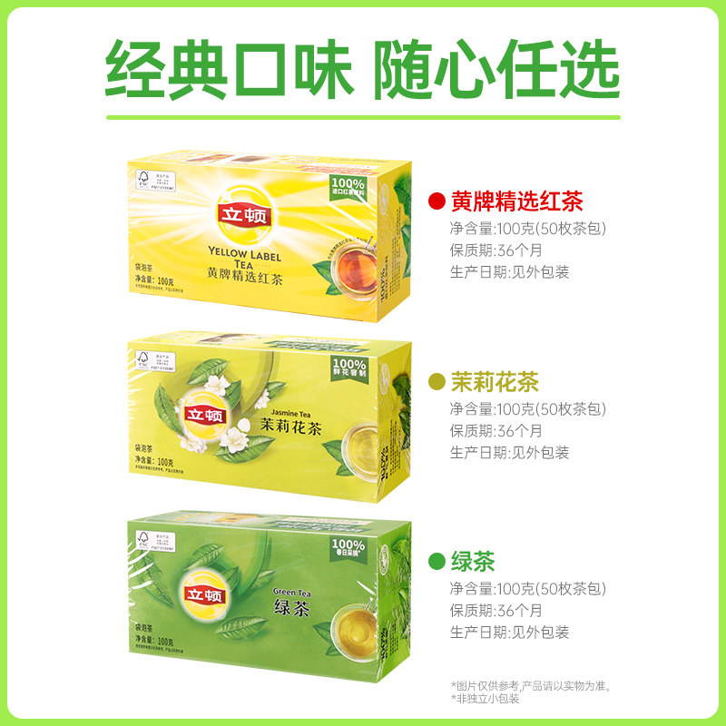 立顿茉莉花茶红茶袋泡茶S50红茶绿茶立顿茶包100g/盒商用制作奶茶
