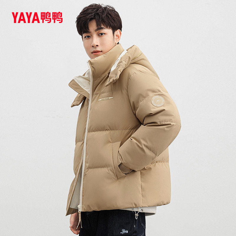 鸭鸭轻薄羽绒服男士2025年秋冬反季短款保暖休闲时尚连帽鸭绒外套