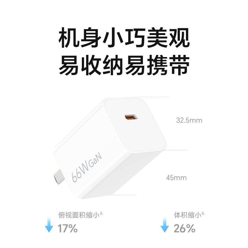 荣耀亲选 充电器66W版氮化镓芯片3C认证小巧便携荣耀快充充电器适用笔记本手机手表耳机