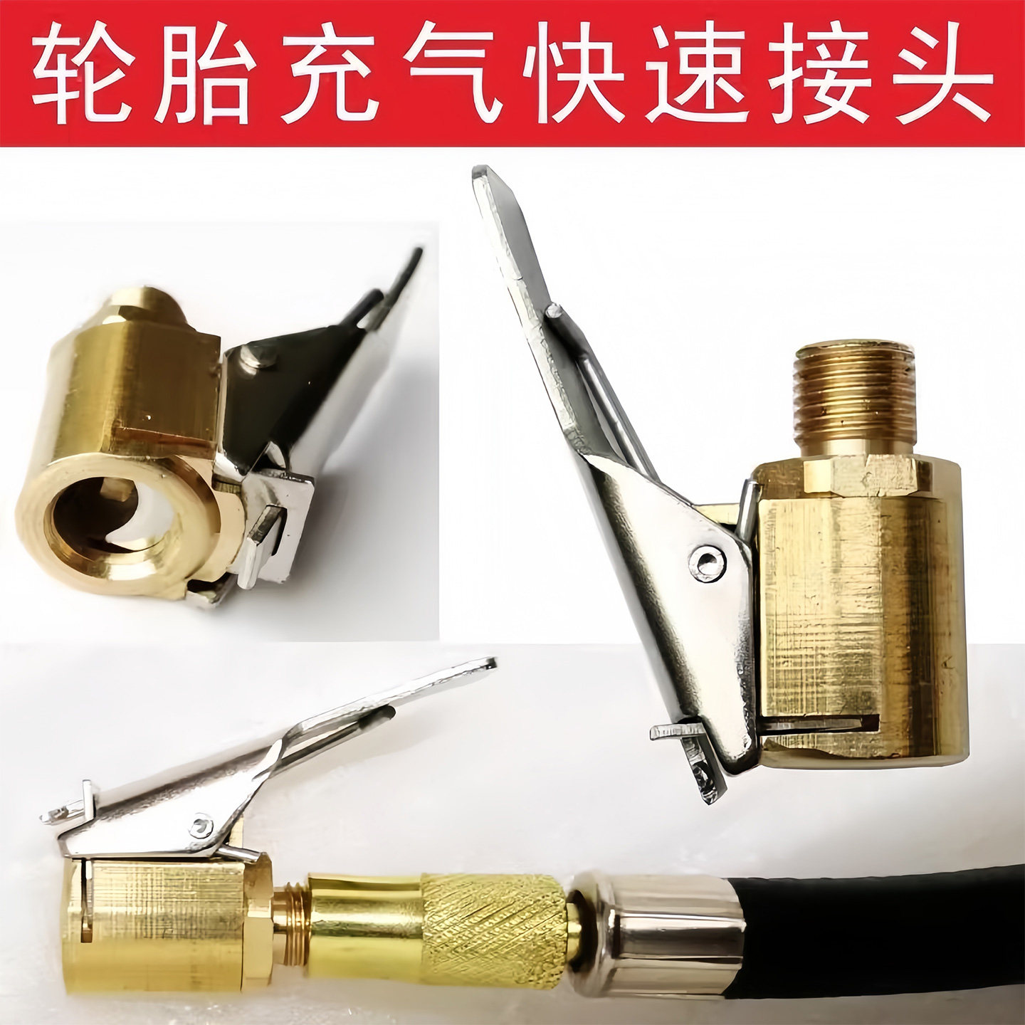 车载充气泵美式螺纹气嘴转接头汽车打气泵配件快速转换头夹式气嘴