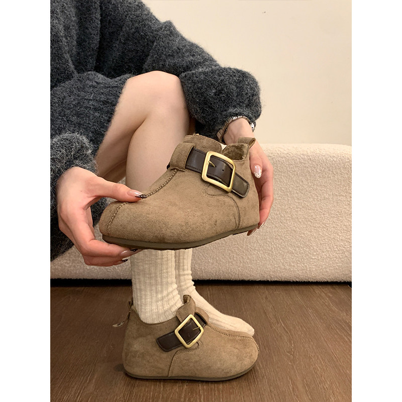 低帮厚底雪地靴女2025新款冬季懒人一脚蹬毛毛棉鞋加绒加厚女鞋子