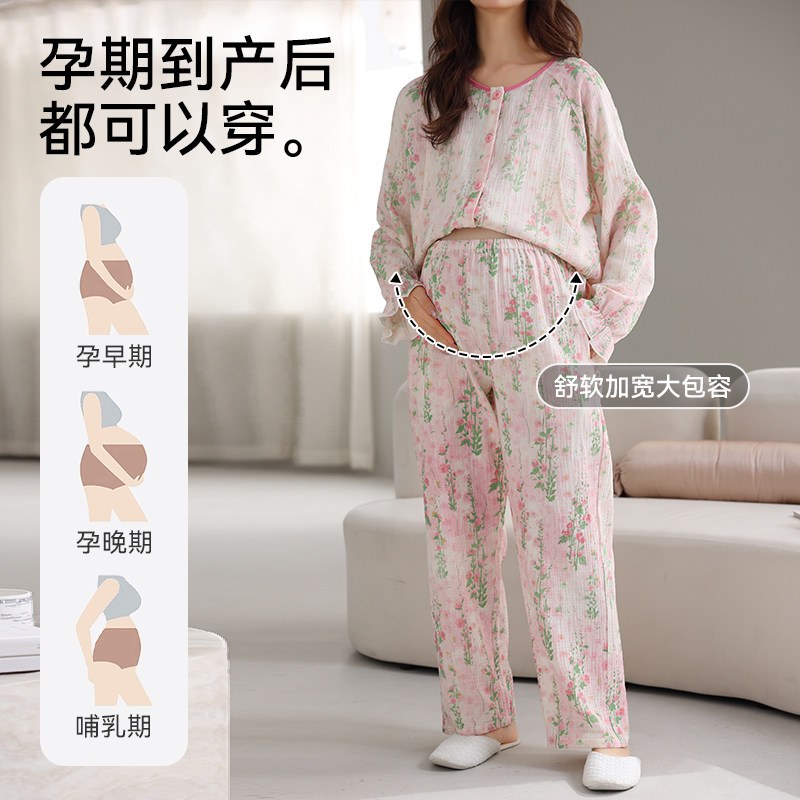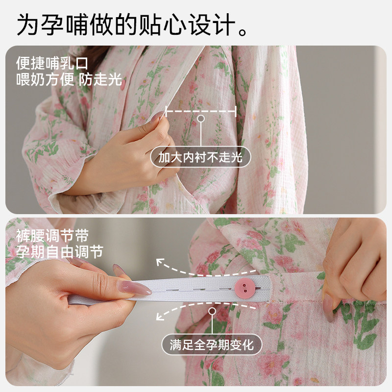 婧麒孕妇睡衣纯棉纱布月子服可调节孕期产妇怀孕期家居服套装女