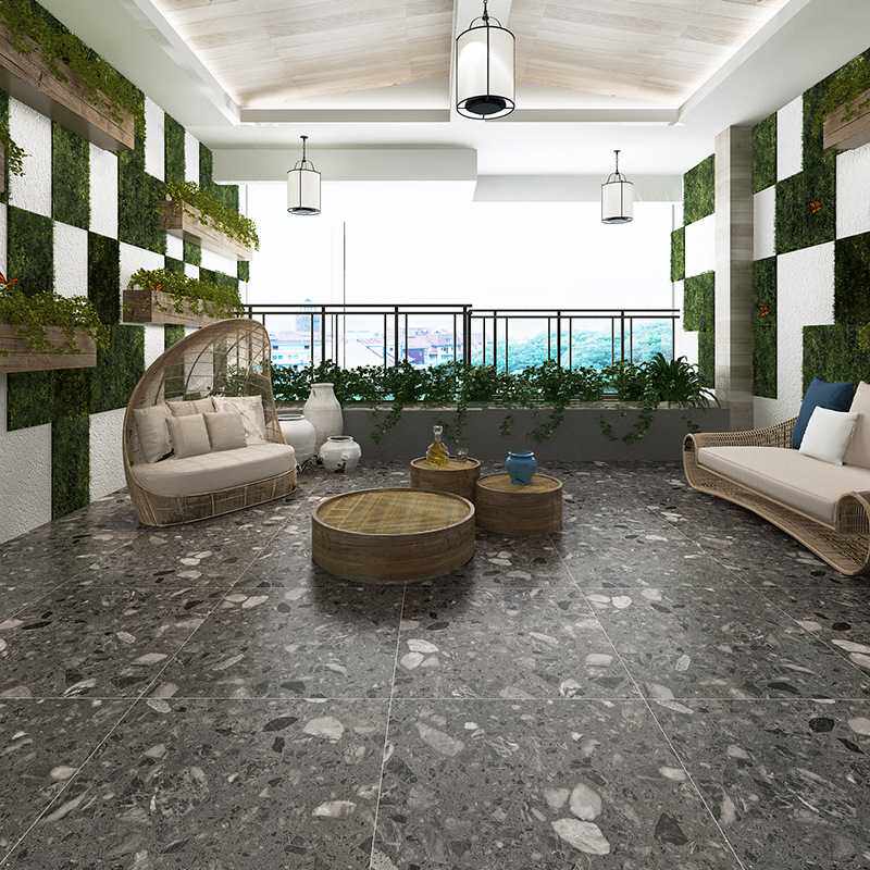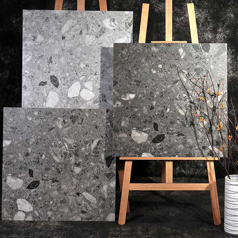 大颗粒半抛面水磨石瓷砖 别墅客厅连锁店防滑耐磨釉面仿古地砖600