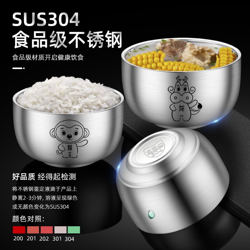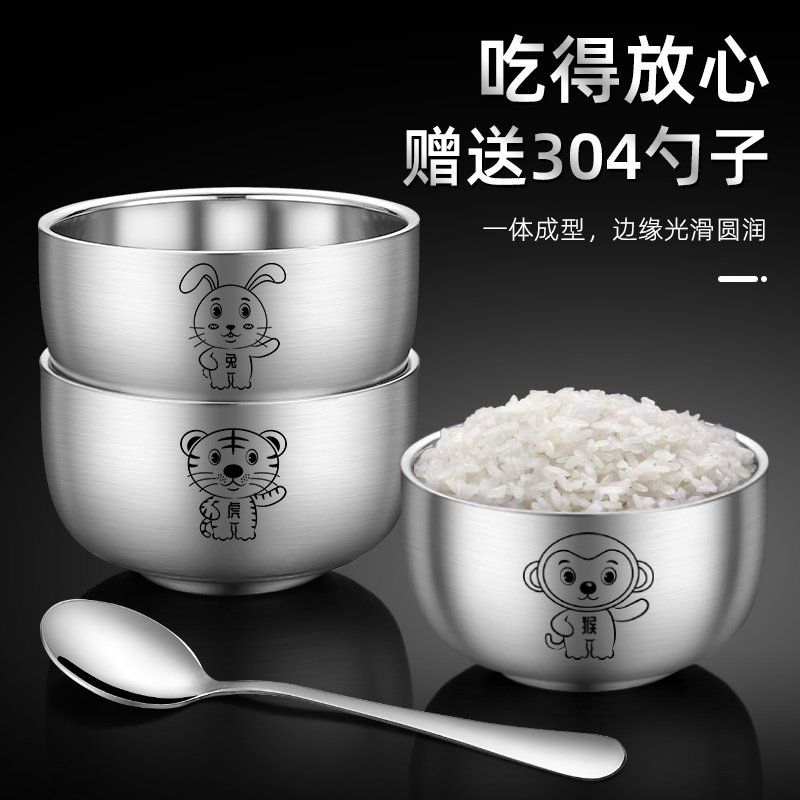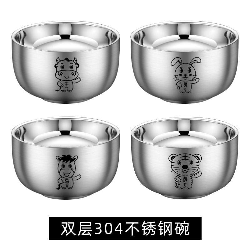 不锈钢碗食品级儿童饭碗家用汤碗勺个人专用餐具防烫防摔十二生肖