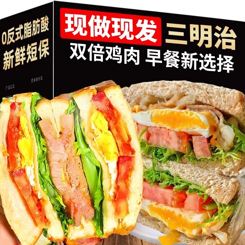 三明治早餐面包火腿片代餐鸡肉芝士夹心吐司零食肉松懒人紫米烘焙