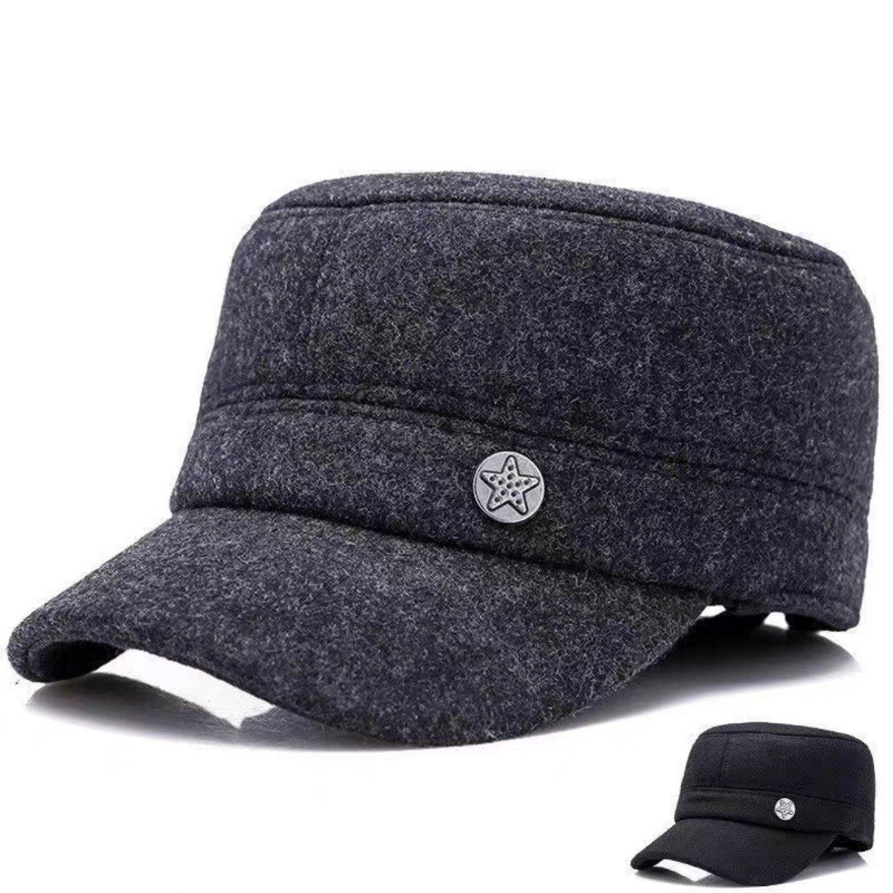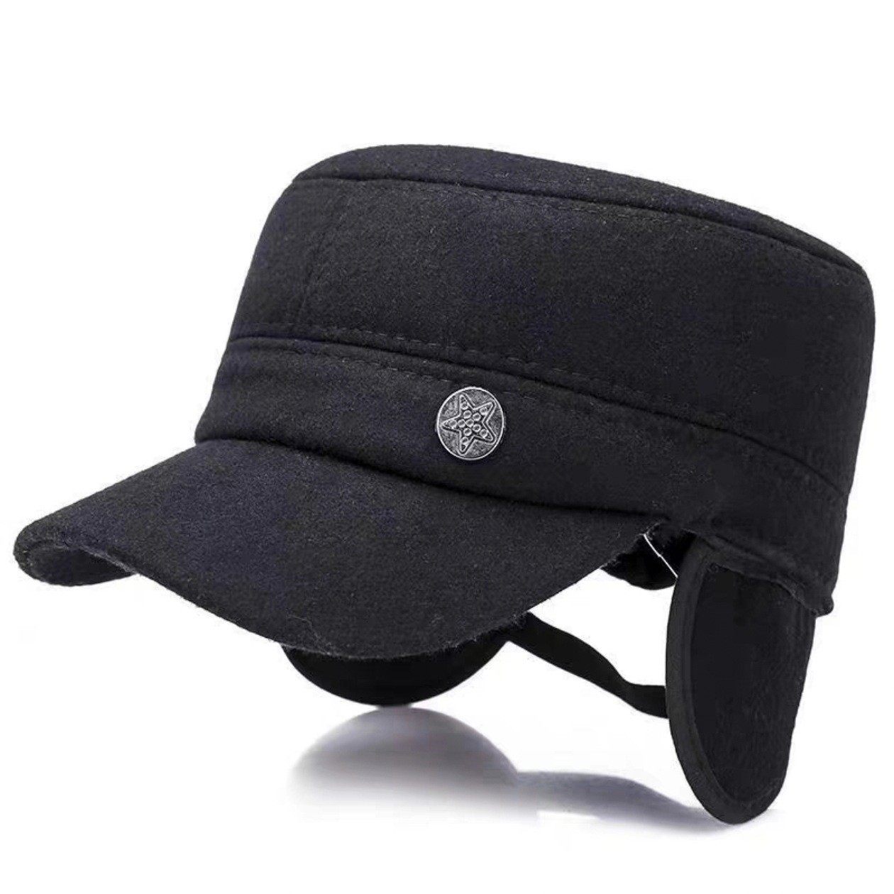 冬天平顶加厚老头帽子防寒冬季男士鸭舌帽中老年人爸爸护耳棒球帽