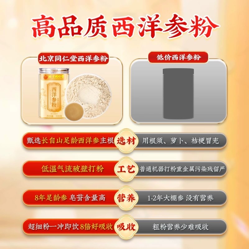 北京同仁堂西洋参粉长白山人参粉正宗花旗参粉西洋叁粉细粉状泡水