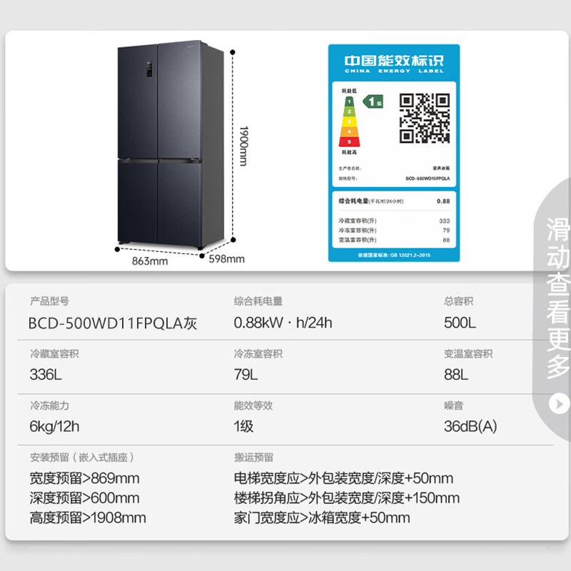 以旧换新补贴海尔539L十字双开四门一级能效无霜电冰箱家用大容量
