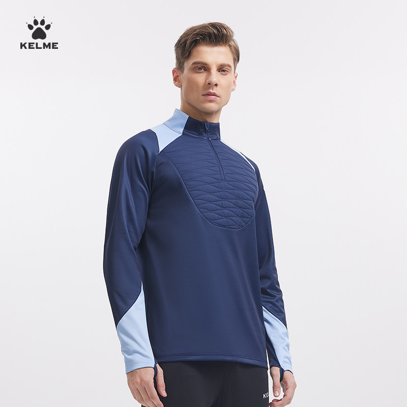 KELME卡尔美2025春季足球训练半拉链卫衣男士夹棉运动撞色套头衫