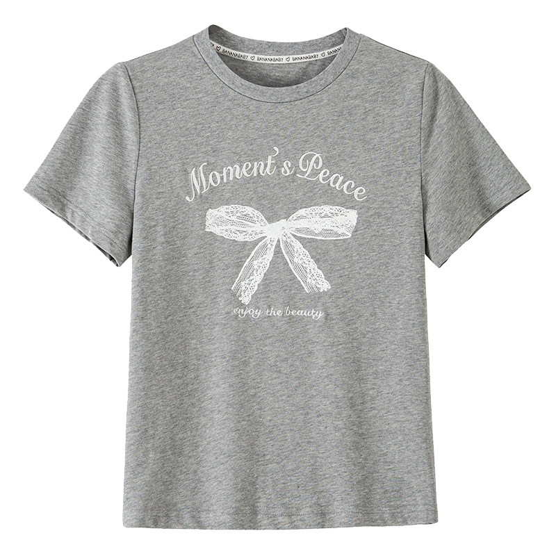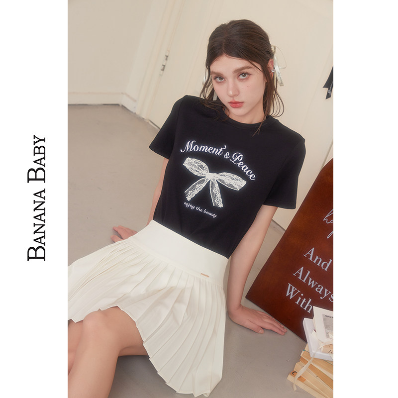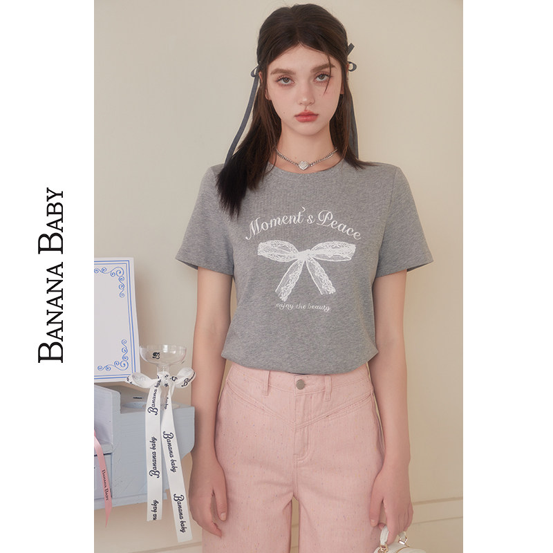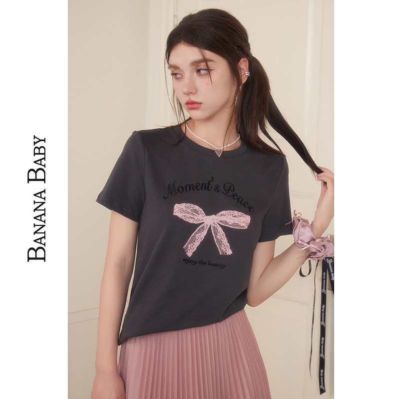 BANANA BABY2025年夏季新款字母刺绣蝴蝶结印花T恤女圆领短袖