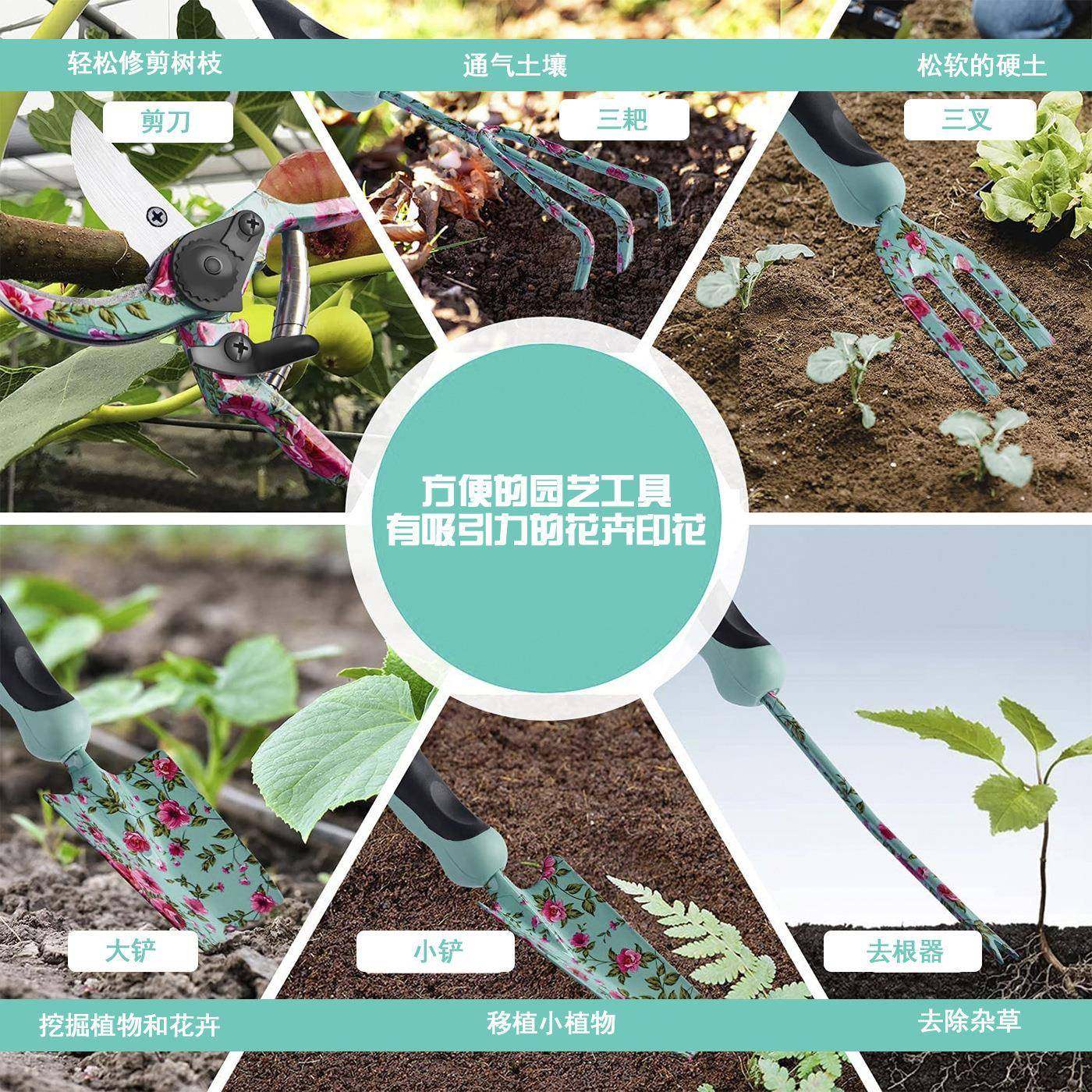 新款不锈钢园艺用品除草花园工具套装印花手套种花园林工具套装