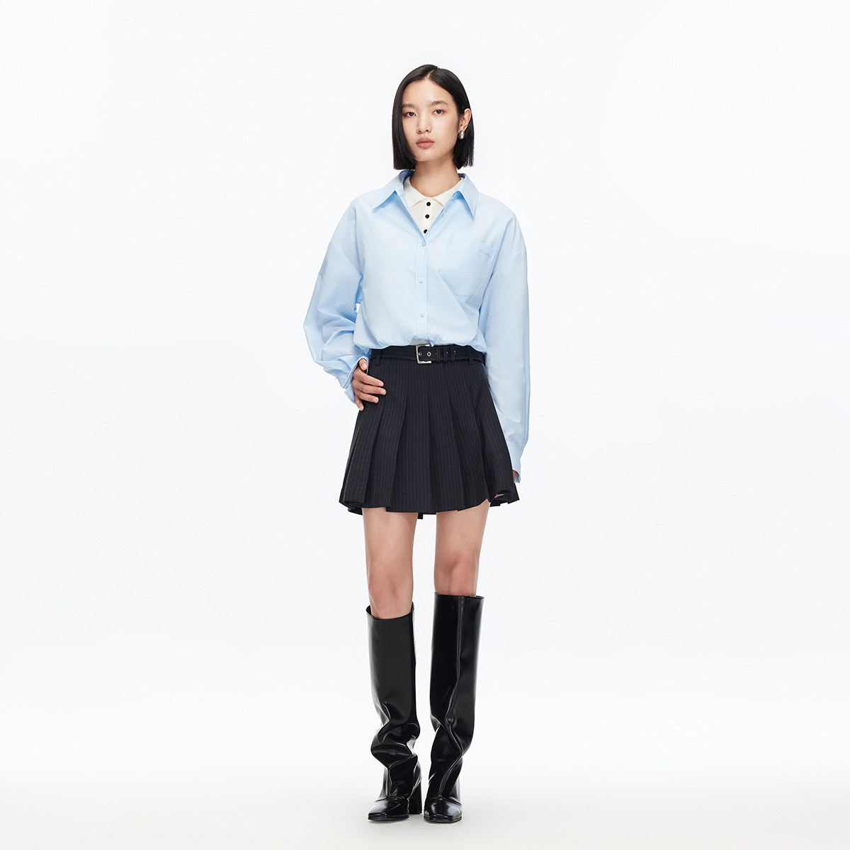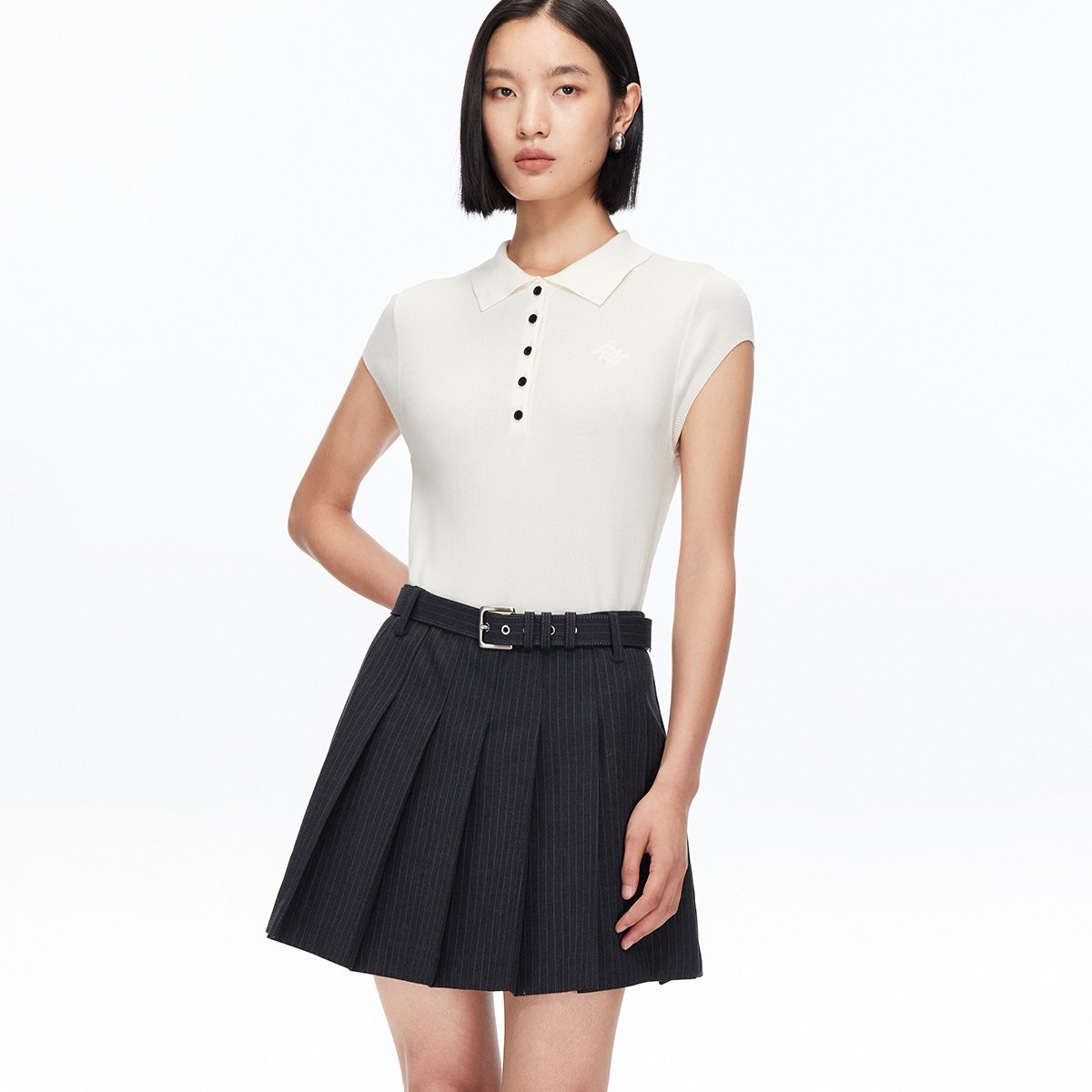 百褶设计 学院减龄;腰带设计 增加造型层次