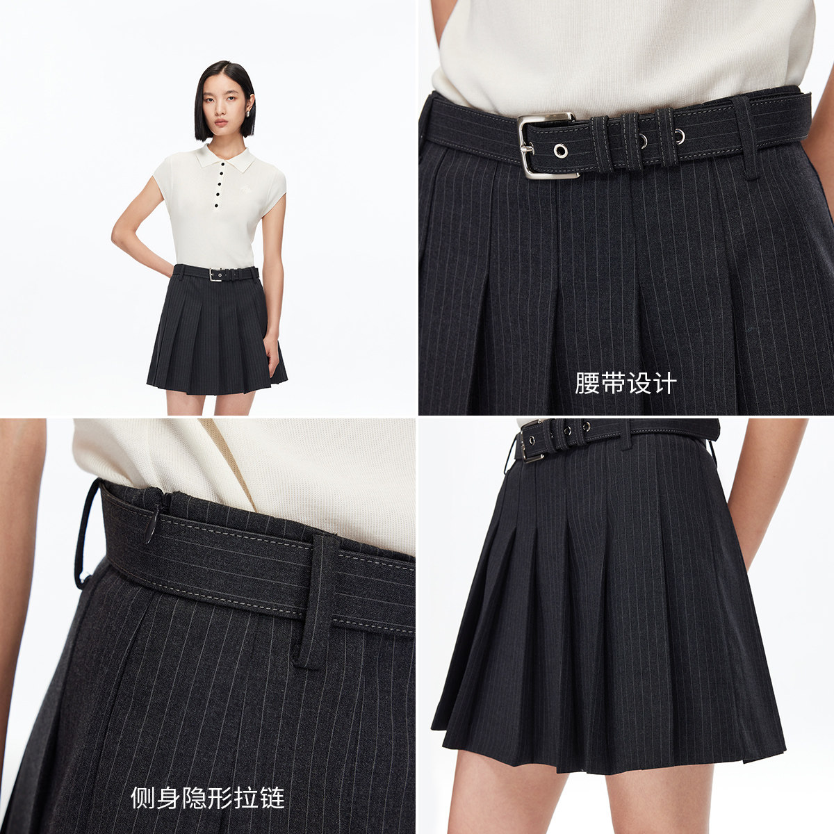 Vero Moda半身裙2025秋季新款条纹学院风百褶裙百搭时尚325316028