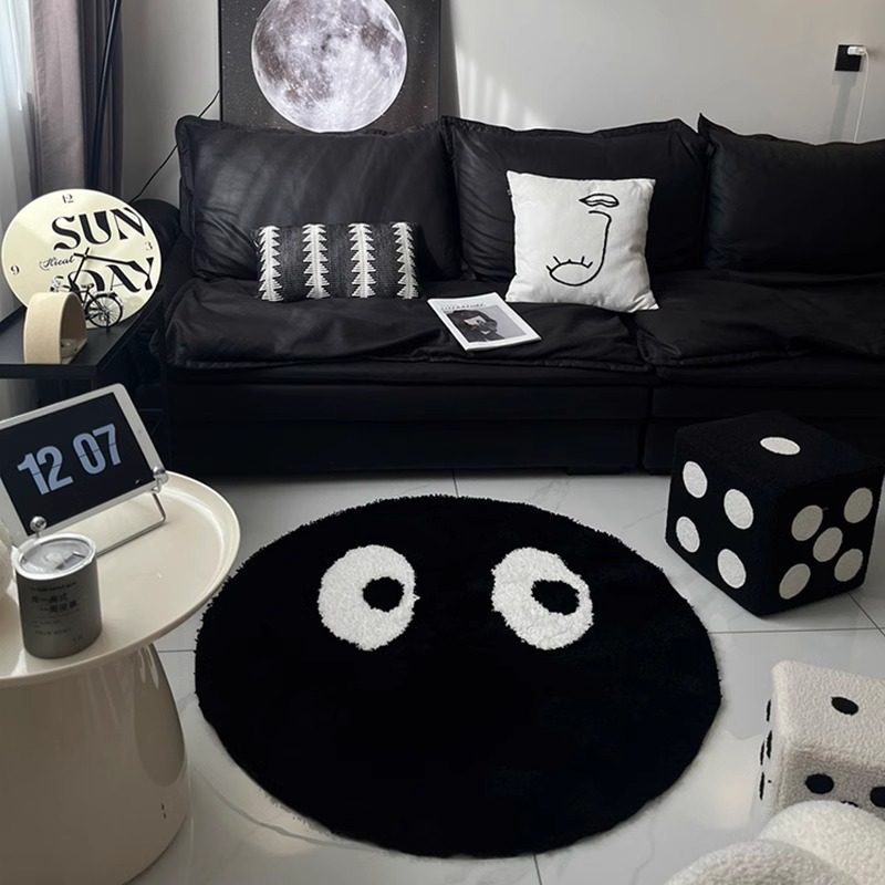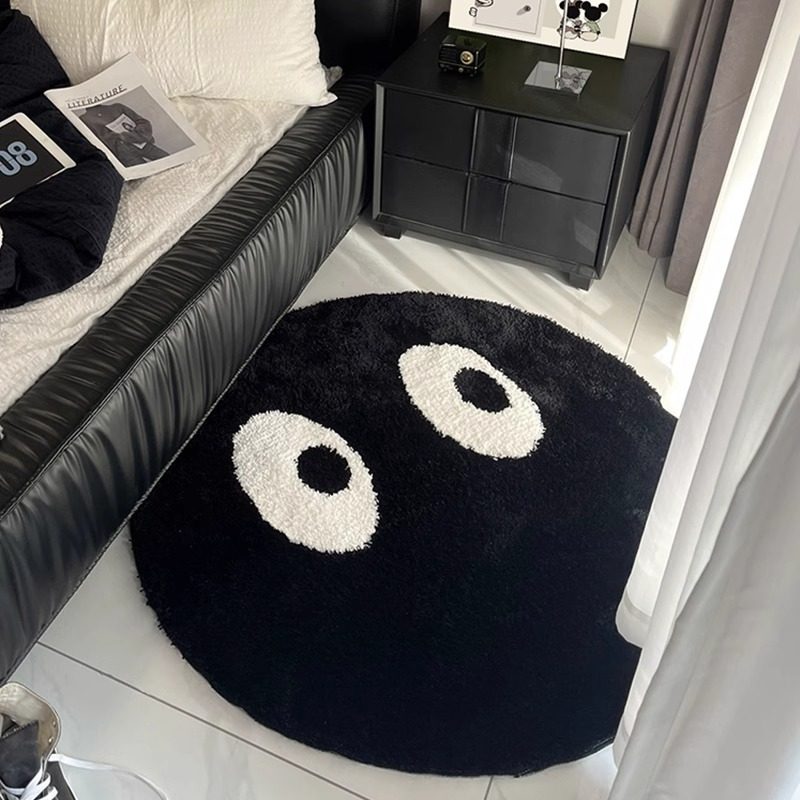 黑色可爱圆煤球客厅创意圆形地毯卧室床边防滑防尘黑色眼睛地毯子