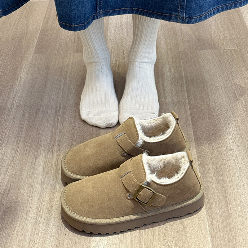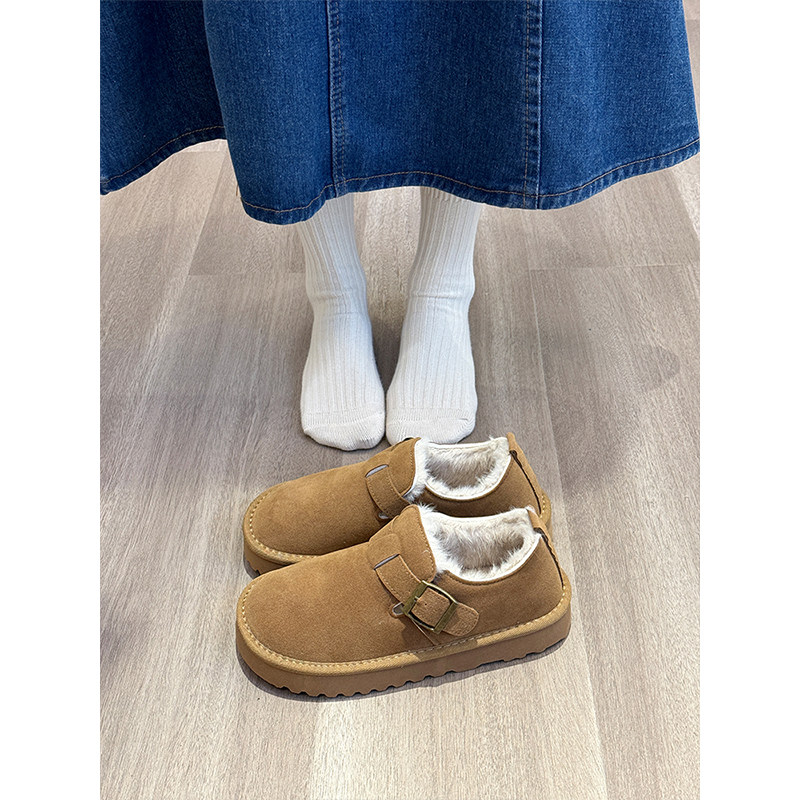 勃肯鞋女加绒加厚保暖平底雪地靴2025新款冬季乐福鞋博肯豆豆棉鞋