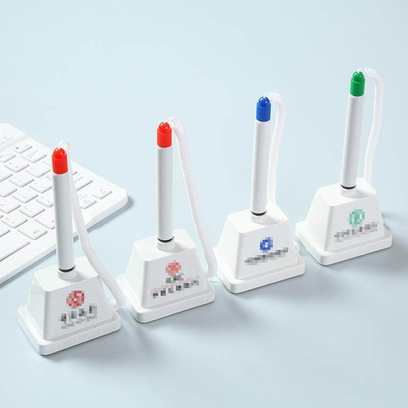 银行柜台台笔 固定签字笔桌面子弹头方座可粘贴带绳吧台笔