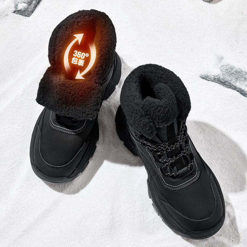 悍途加绒保暖棉鞋男士新款冬季厚底加厚防水男鞋东北运动雪地靴女