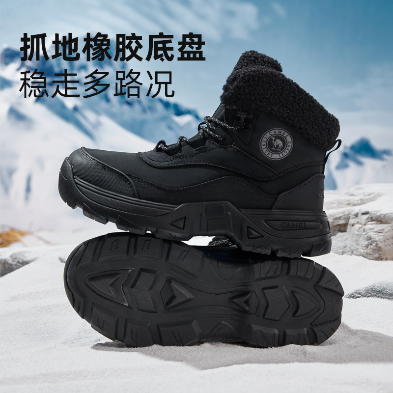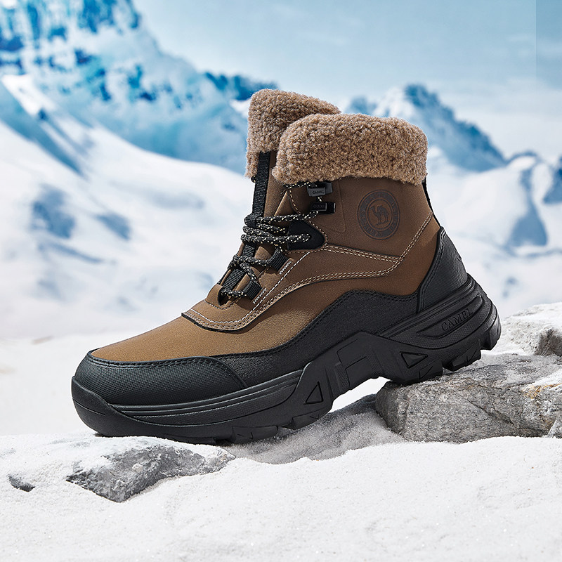 【骆驼踏雪】男鞋2025冬季加绒加厚棉鞋防滑运动高帮雪地靴