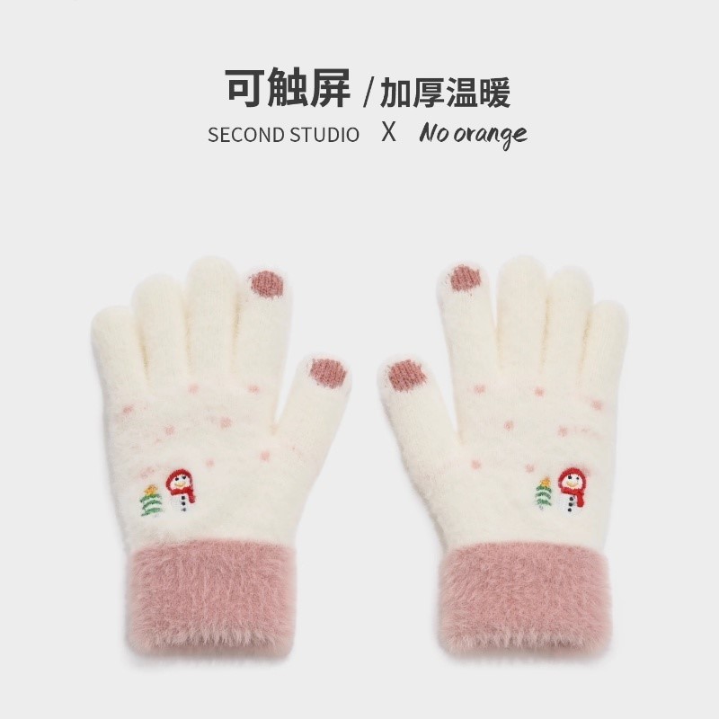 可触屏保暖加厚2025新款可爱毛绒针织手套女生冬季骑车防寒风女士