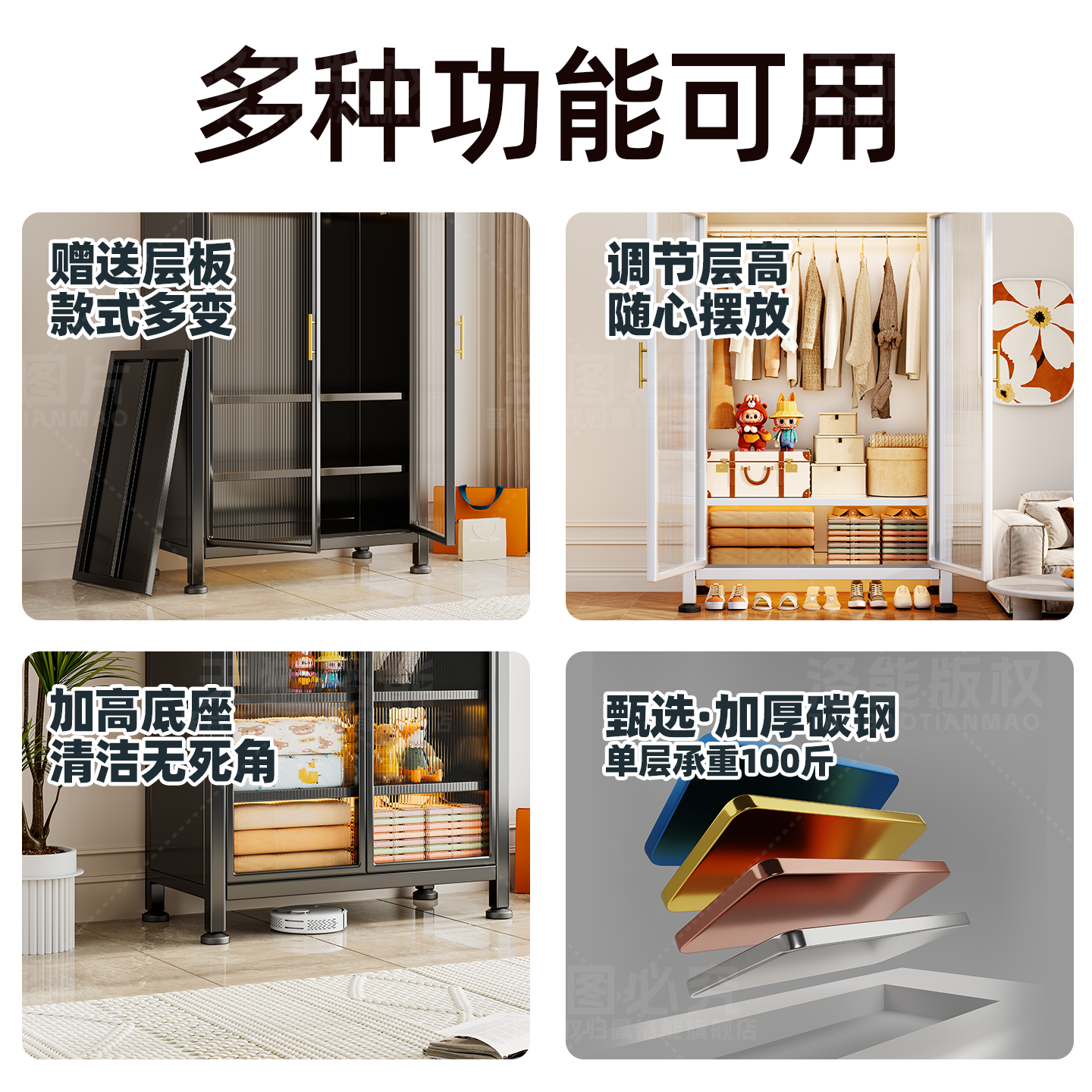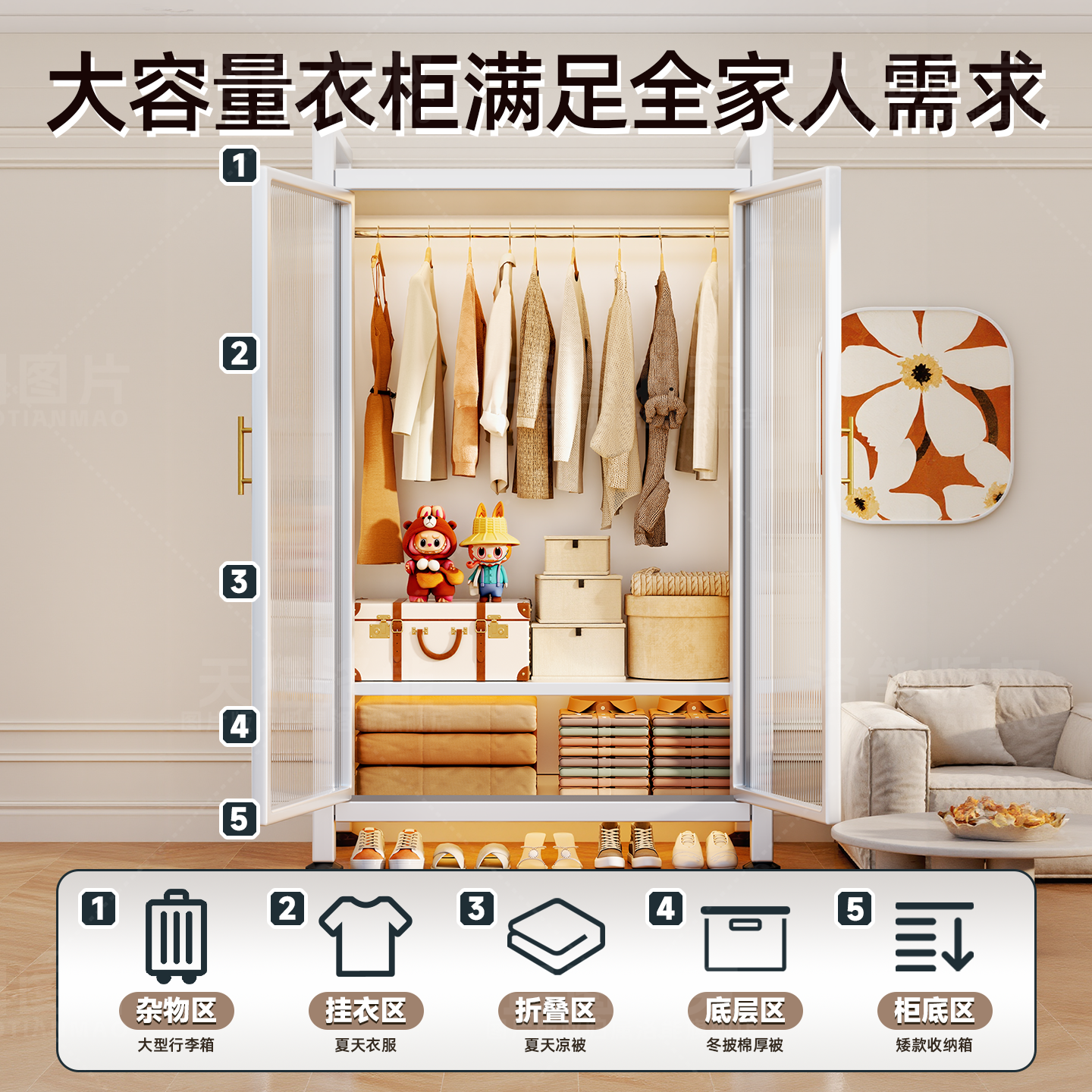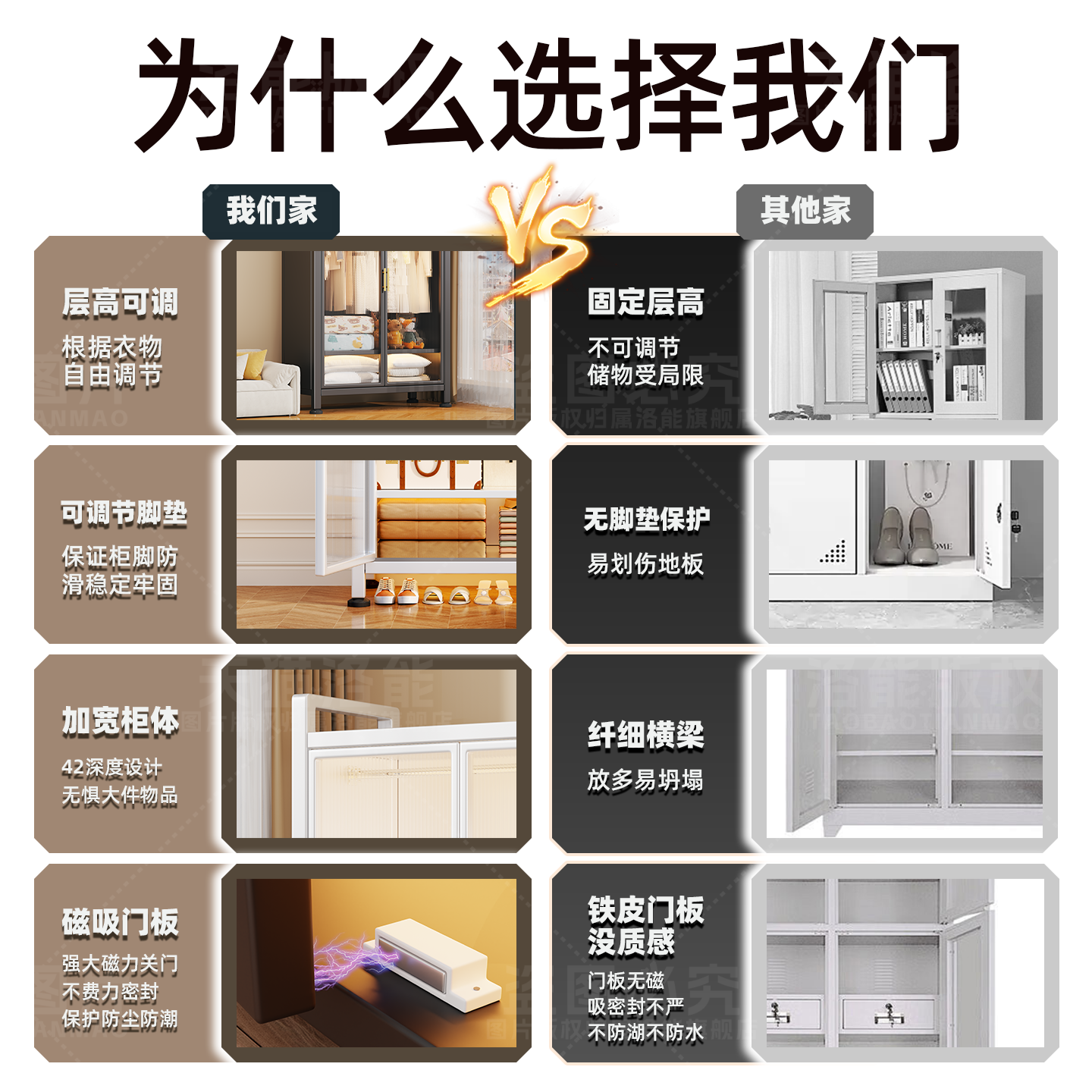 钢制衣柜卧室家用加厚铁艺简易收纳柜子出租房用儿童宝宝衣橱碳钢