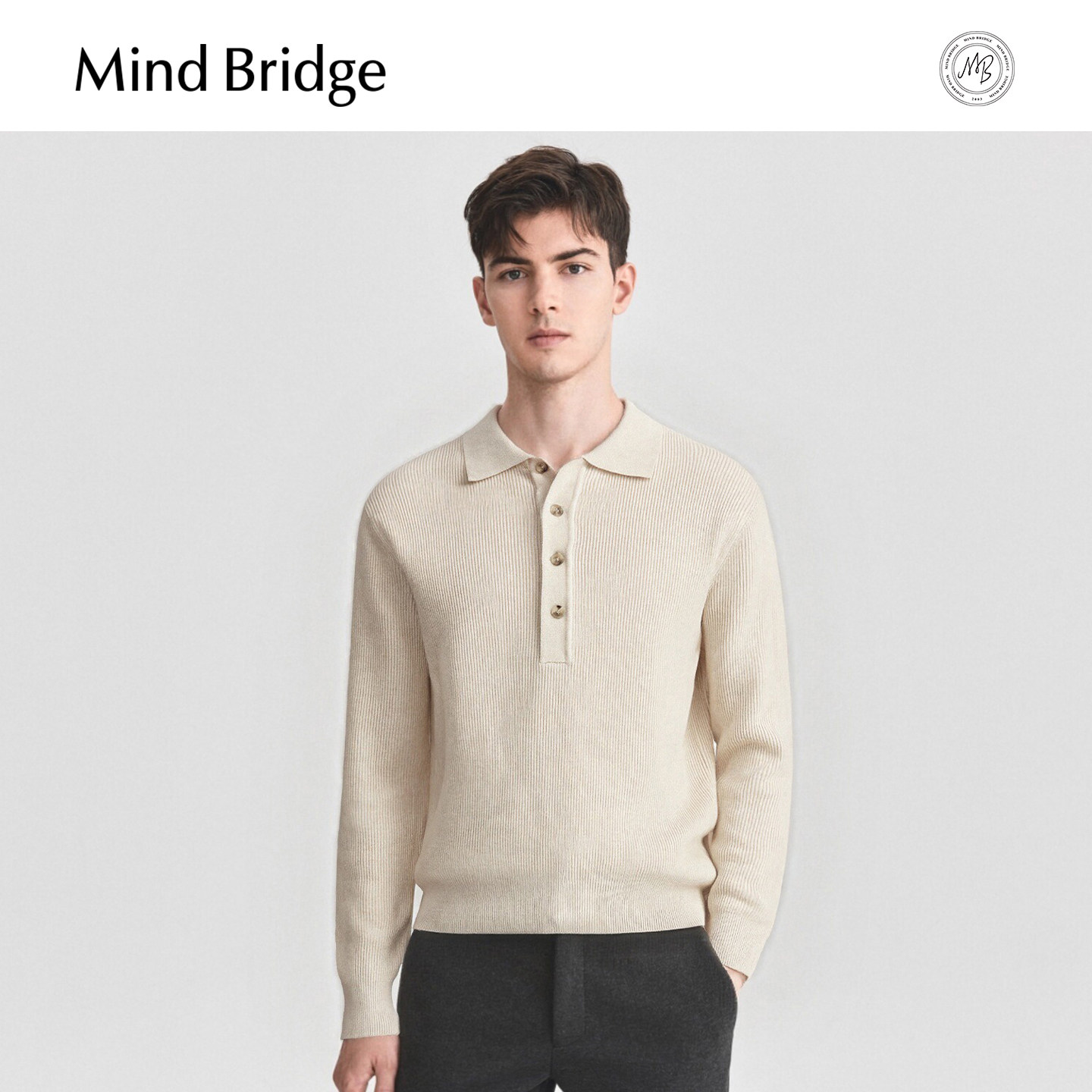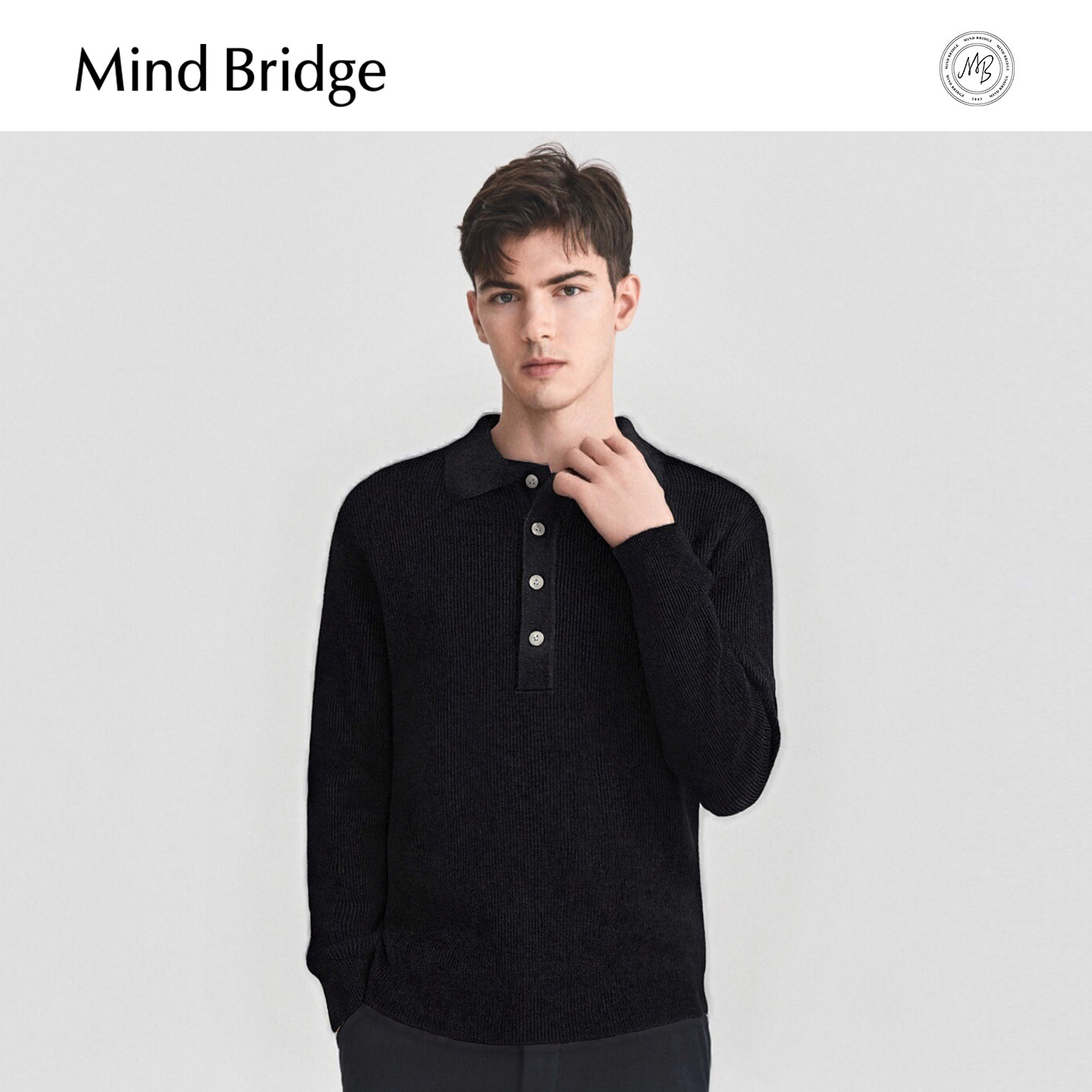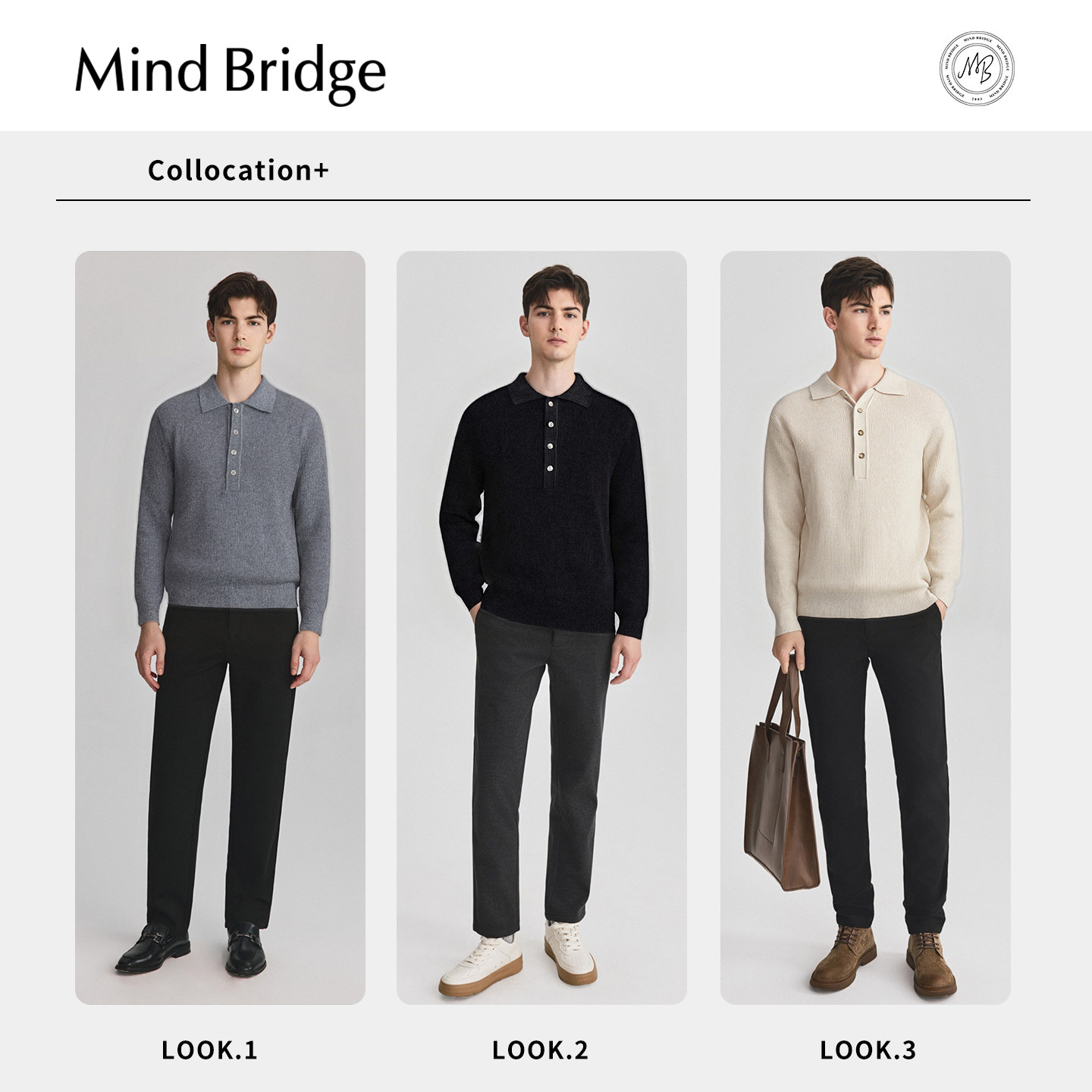 MindBridge【绵羊毛】男士毛衣纯色休闲上衣2025年冬Polo领针织衫