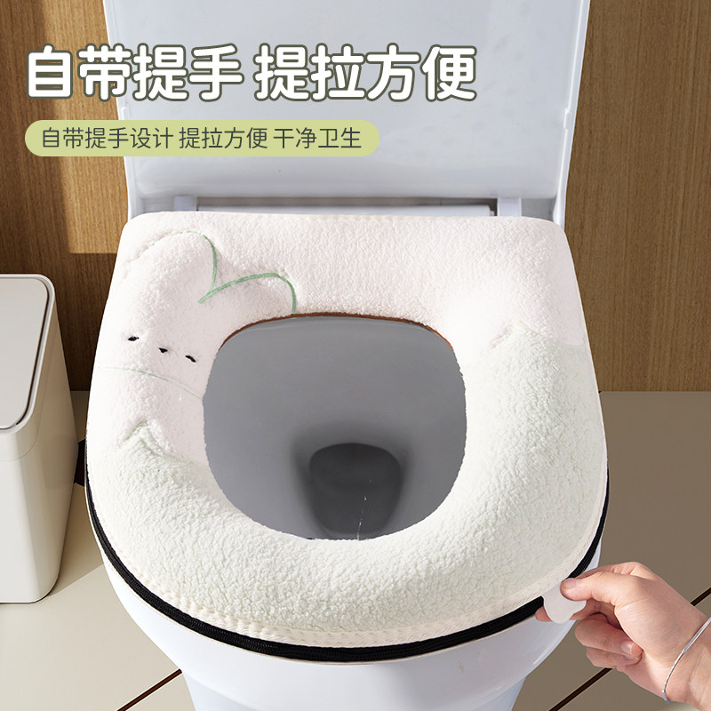 马桶垫子四季通用加大加厚坐便套圈秋冬款家用针织套垫毛绒粘贴