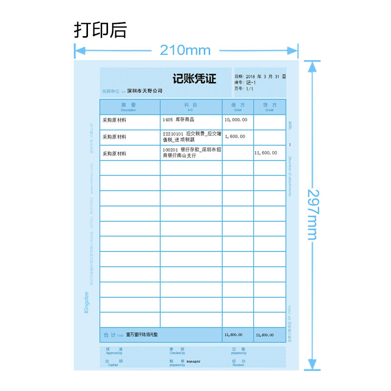 金蝶妙想A4竖版激光金额记账凭证打印纸KP-J107S套打账册210*297mm金蝶软件适用激光喷墨会计记账凭证打印