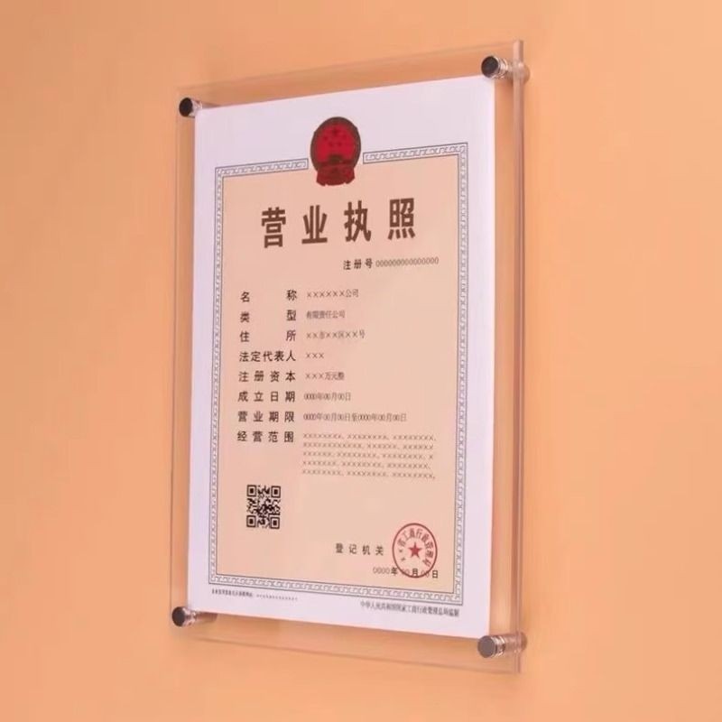 亚克力透明水晶相框摆台放A4证书框营业执照框架8mm挂墙玻璃经营