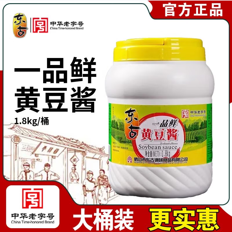 东古一品鲜黄豆酱1.8kg大桶正宗拌饭干锅东北大酱老字号桶装家用