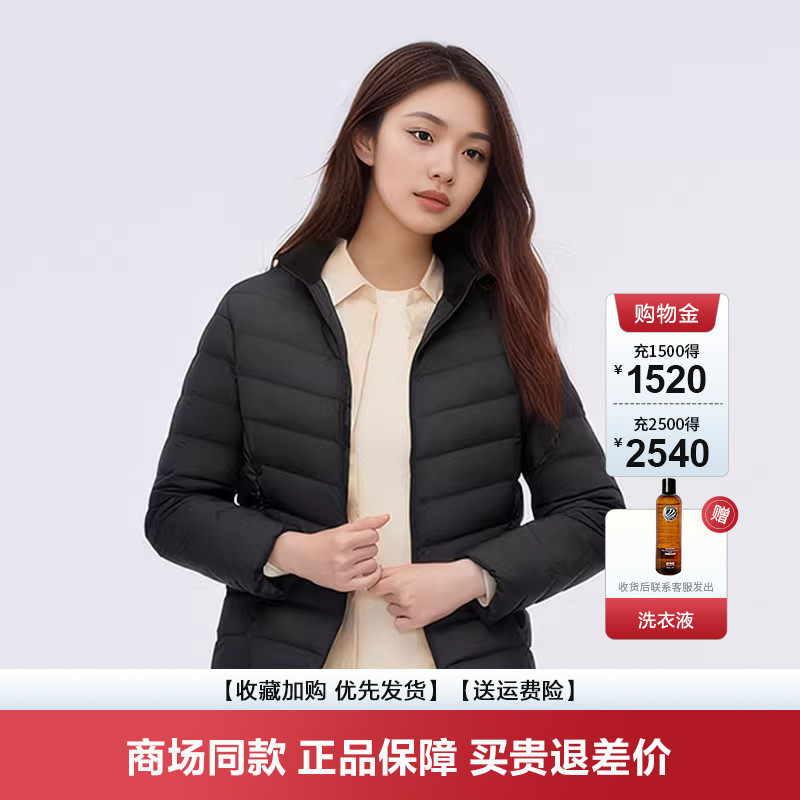 鸭鸭轻薄羽绒服女2025年秋冬反季短款立领修身舒适上衣内胆外套J