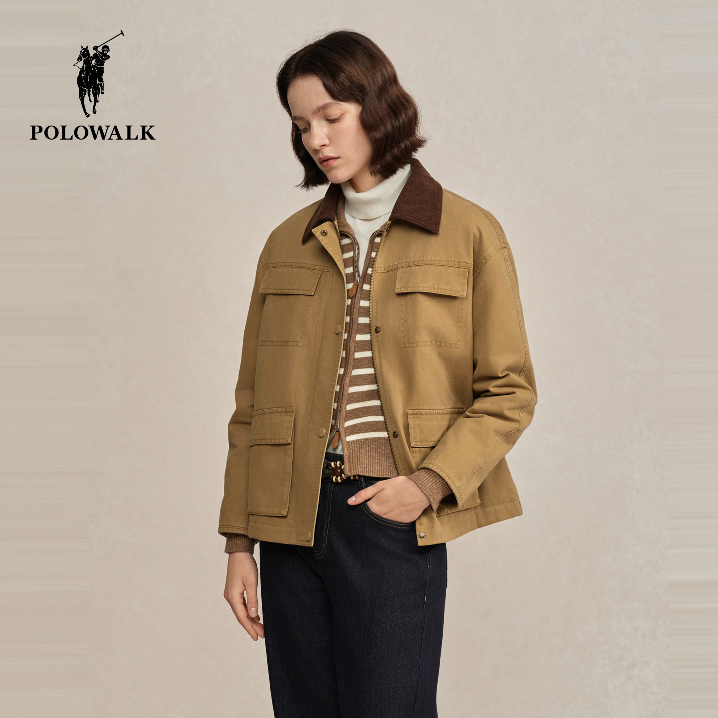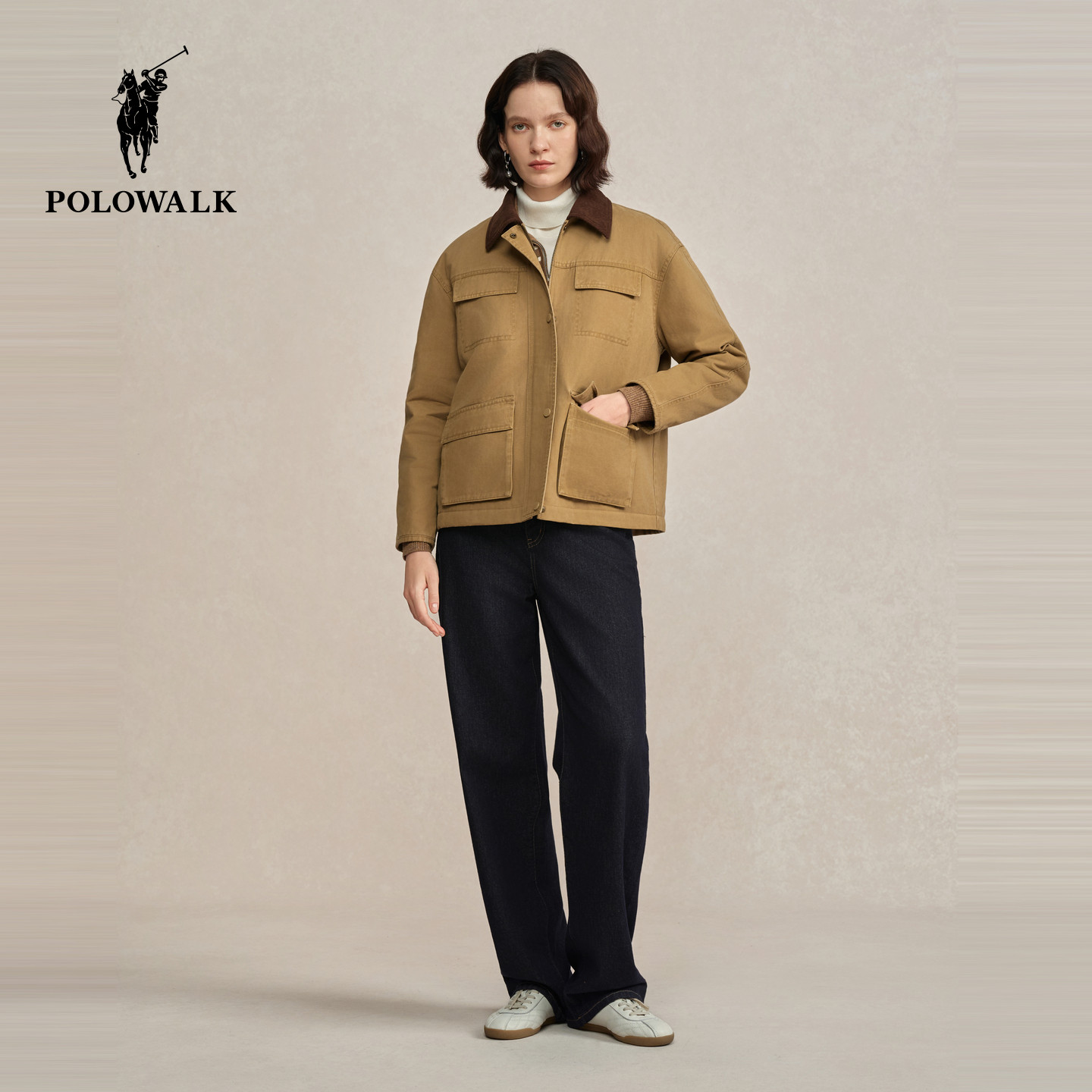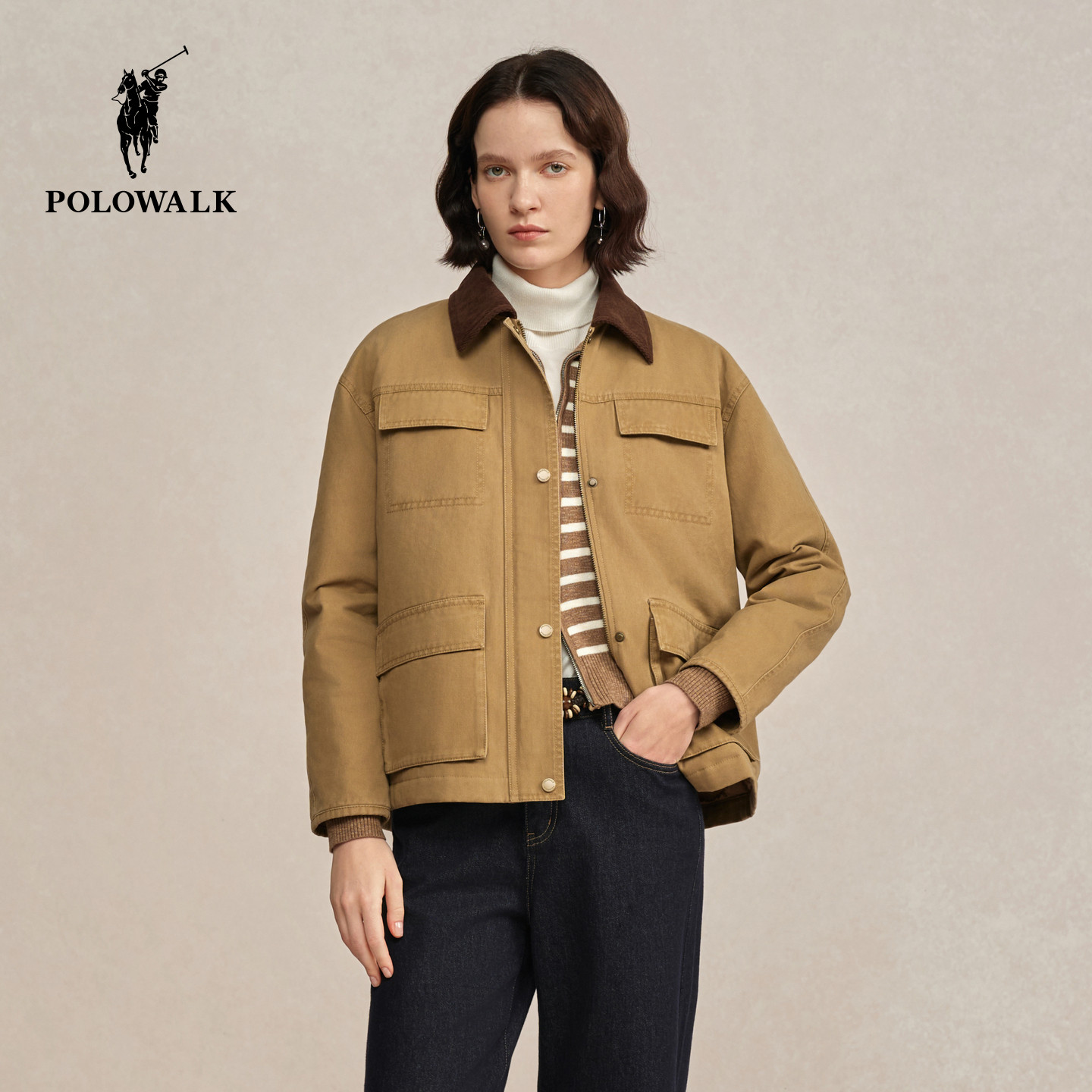 POLOWALK女式羽绒服2025冬季新品韩版复古工装通勤羽绒90鸭绒外套