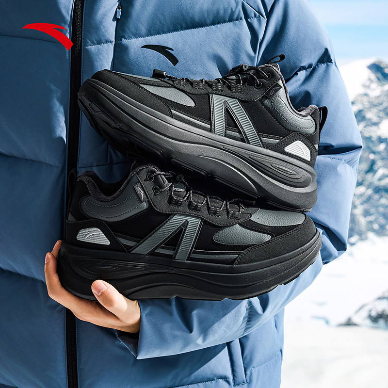 安踏无界丨加绒保暖高帮休闲棉鞋男冬季加厚黑色运动鞋112618933