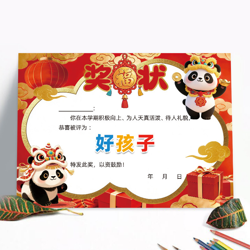 幼儿园 好孩子奖状过年 红色 喜庆多款混装 进步小明 学期末 表扬信荣誉证书 可定制 优秀宝贝小奖状