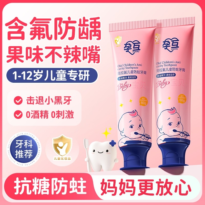 呵护HEHU儿童牙膏含氟防蛀奥拉氟牙膏水果味1-6-12岁中大童换牙期