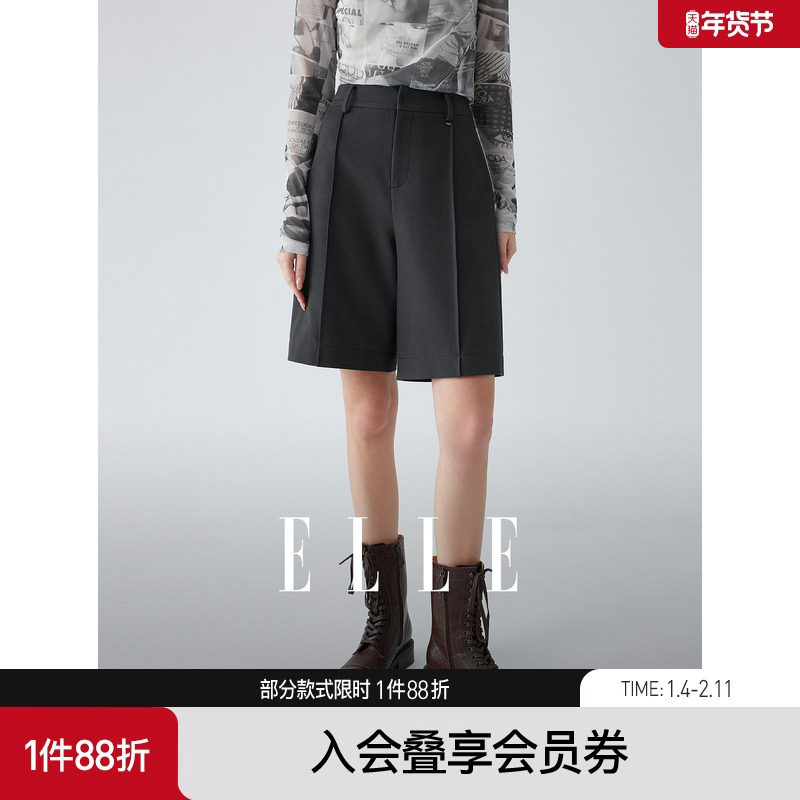 ELLE法式高腰休闲短裤女2025秋季新款小个子高级感时髦通勤西装裤