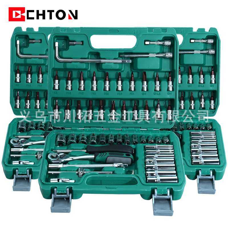 54件套绿盒72齿棘轮扳手S2批头套筒棘轮组套家用修车小飞工具套装