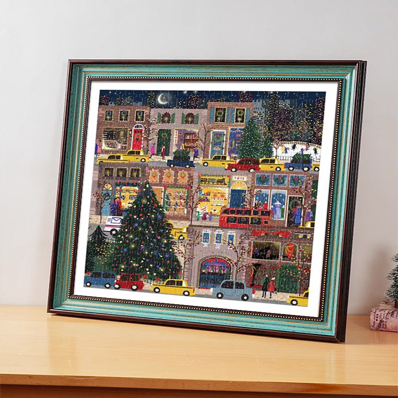 galison冬灯拼图相框挂墙50.8*方形装裱画框diy繁花盛开圣诞双面