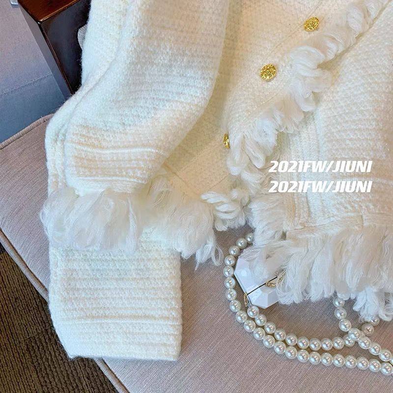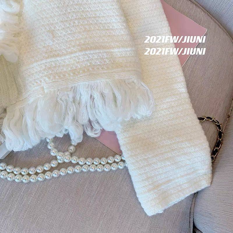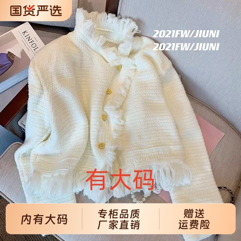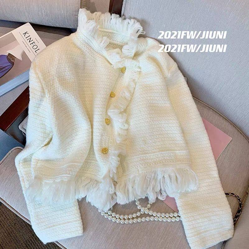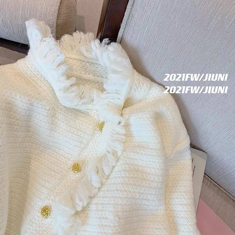 小香风白色流苏毛边女秋冬2025新款设计感不规则大码内搭针织开衫