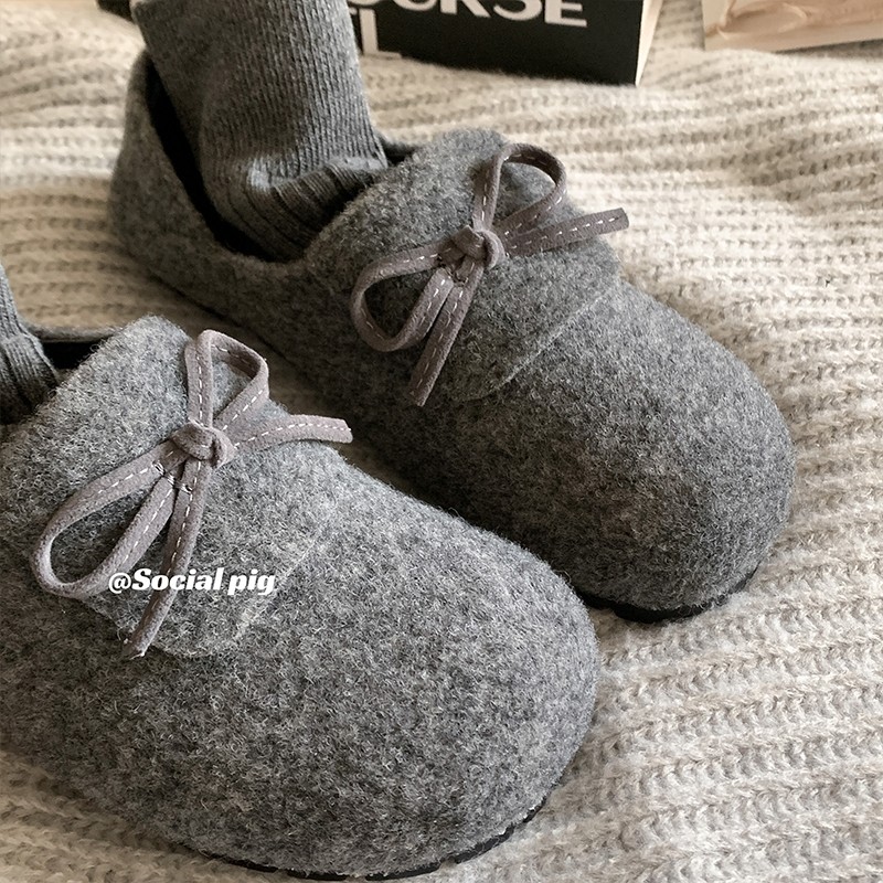 秋冬保护色~松弛感满满!文艺复古毛呢勃肯鞋女加绒一脚蹬单鞋