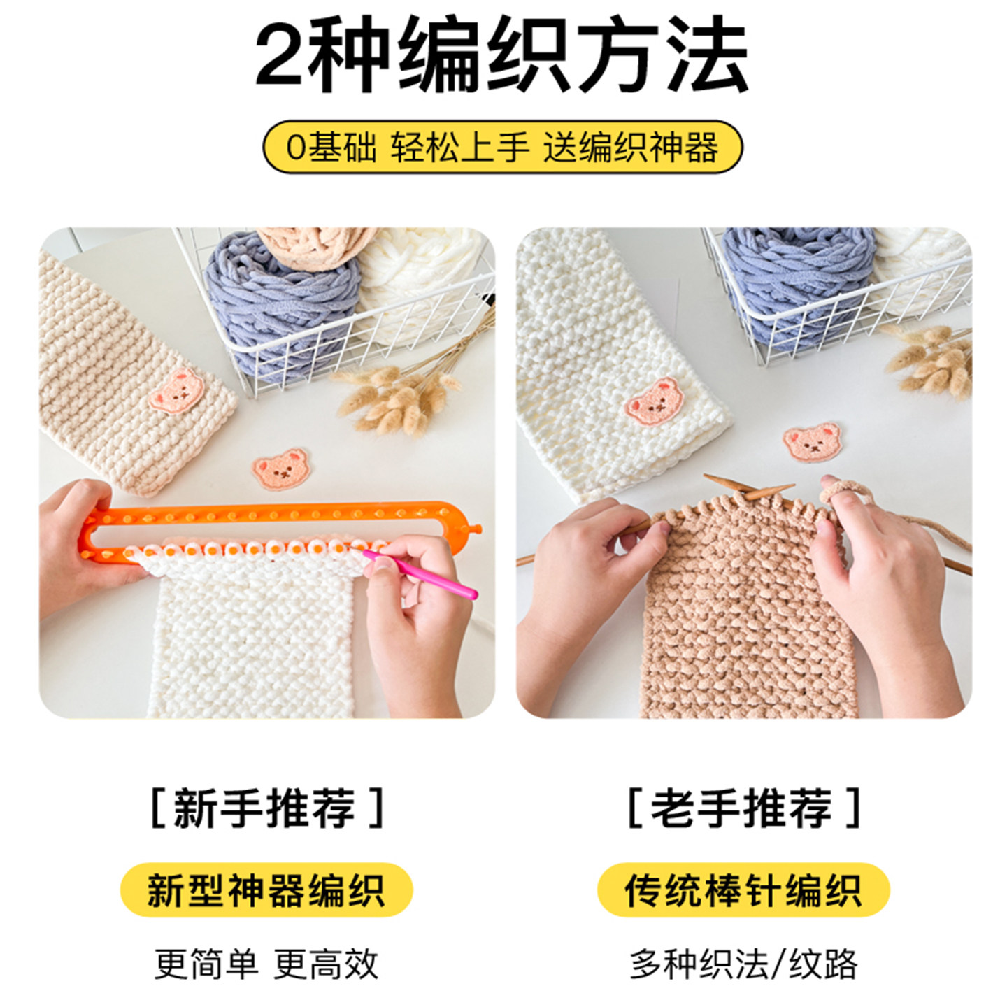 编织小熊神器围巾手工冰条毛线diy线团材料冰条线棒针红色黑色