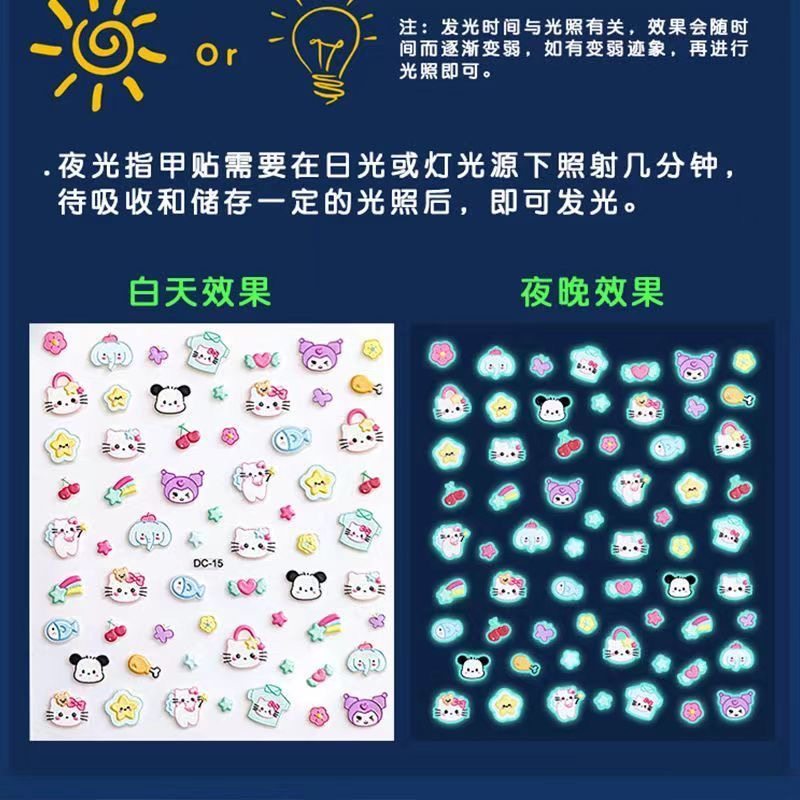 儿童指甲夜光美甲贴纸小女孩女孩卡通安全发光可爱防水环保公主