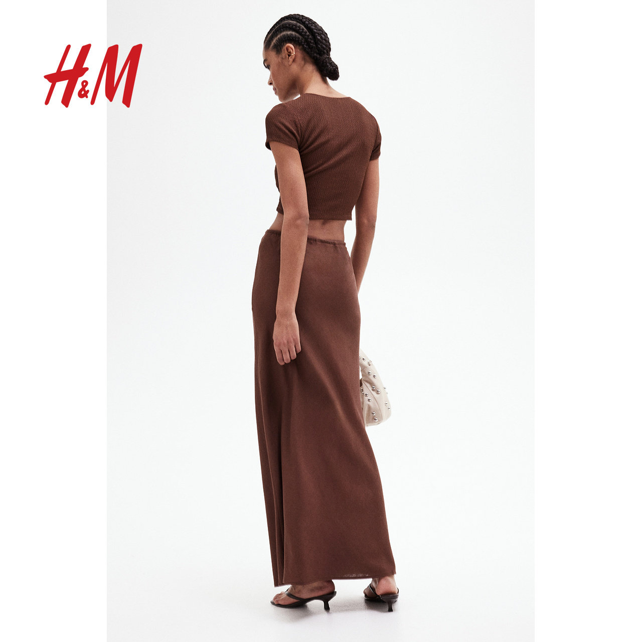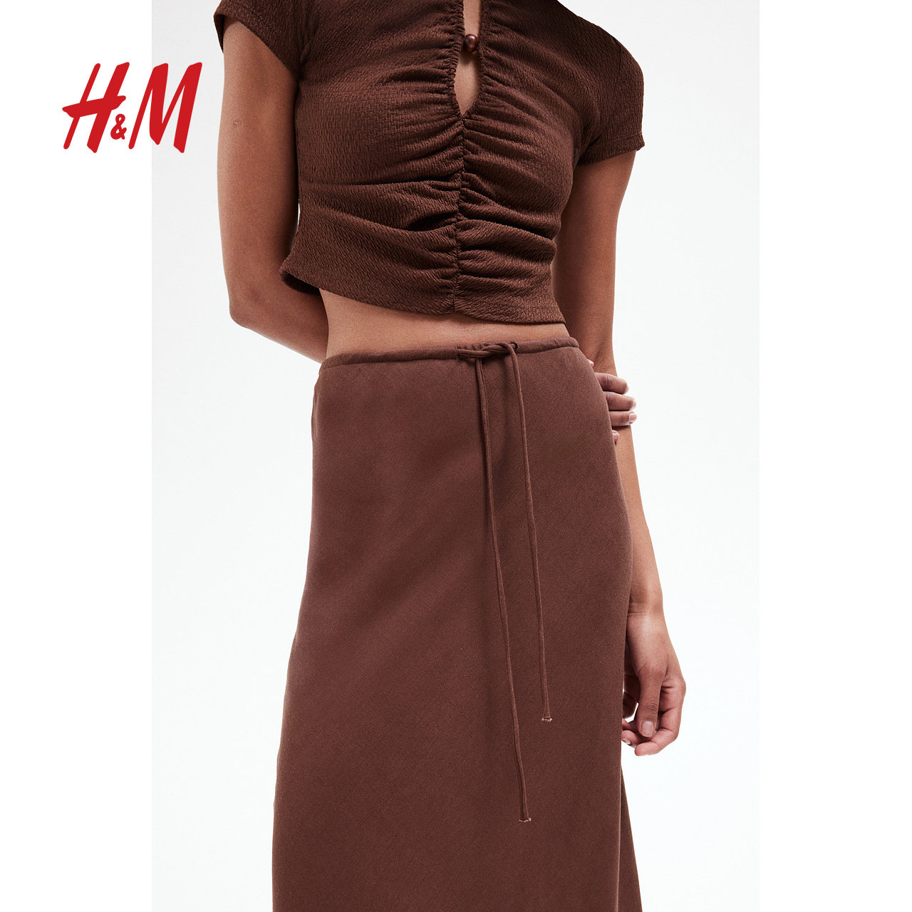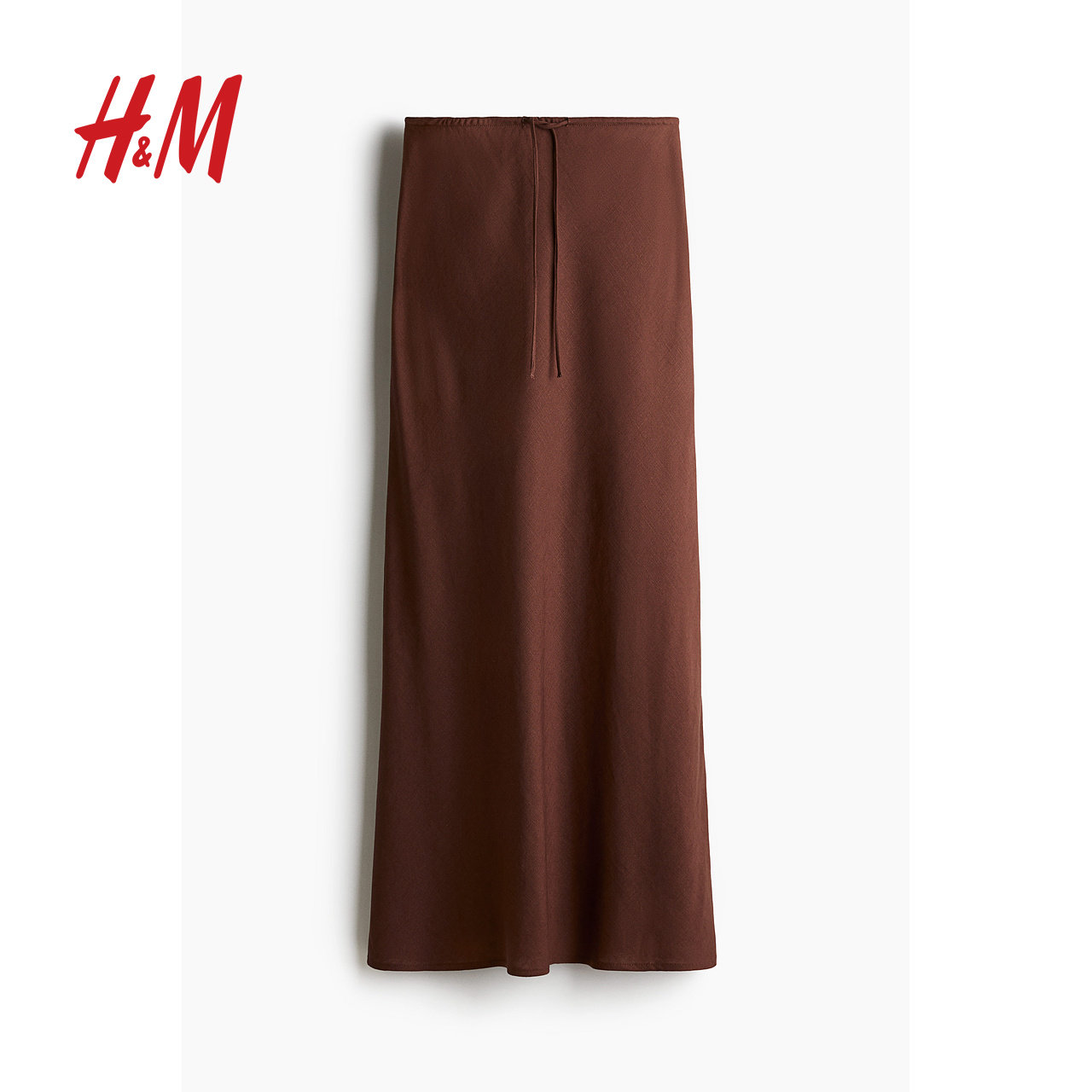 HM女装半身裙冬季时尚直筒韩系风松紧腰半身长裙1271529