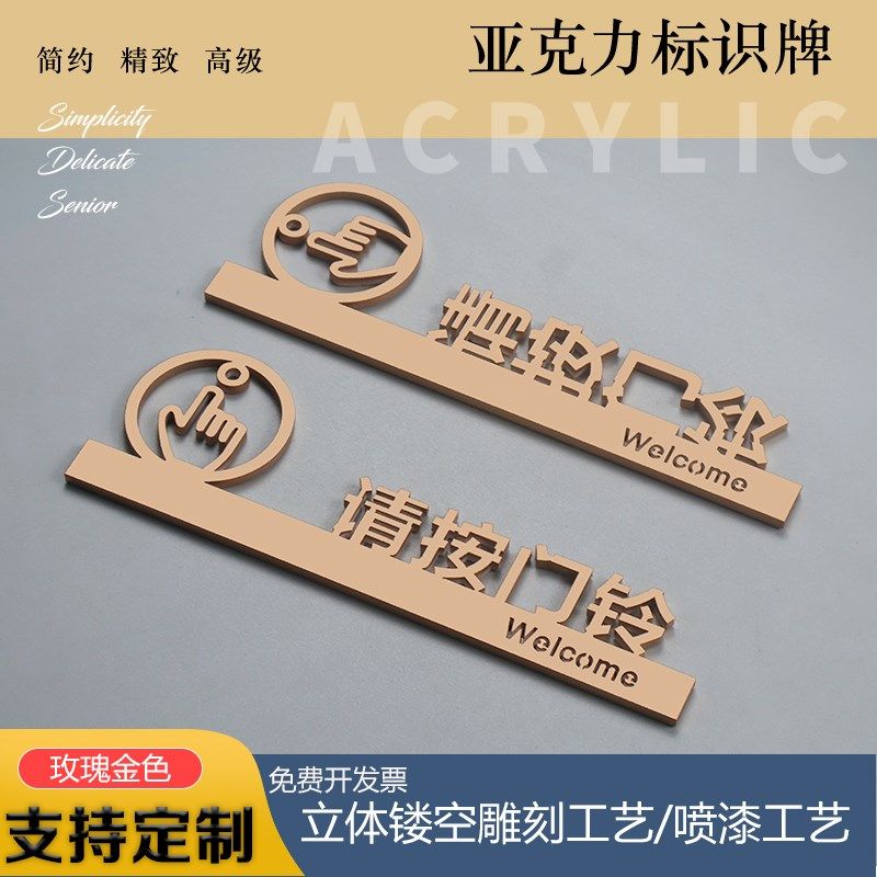 亚克力请按门铃标识提示指示牌开门按钮温馨门禁开关玻璃墙贴门牌
