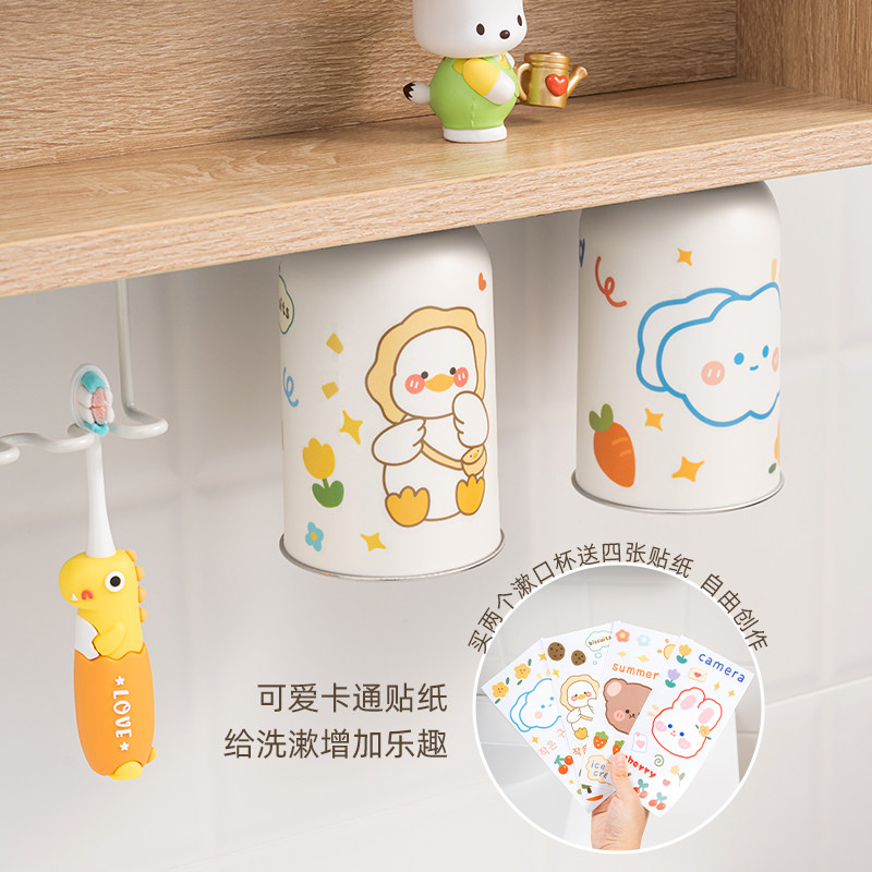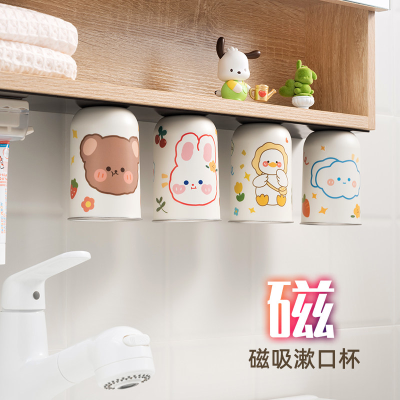 安隅镜柜底磁吸漱口杯卡通贴纸diy儿童不锈钢洗漱杯子牙刷置物架